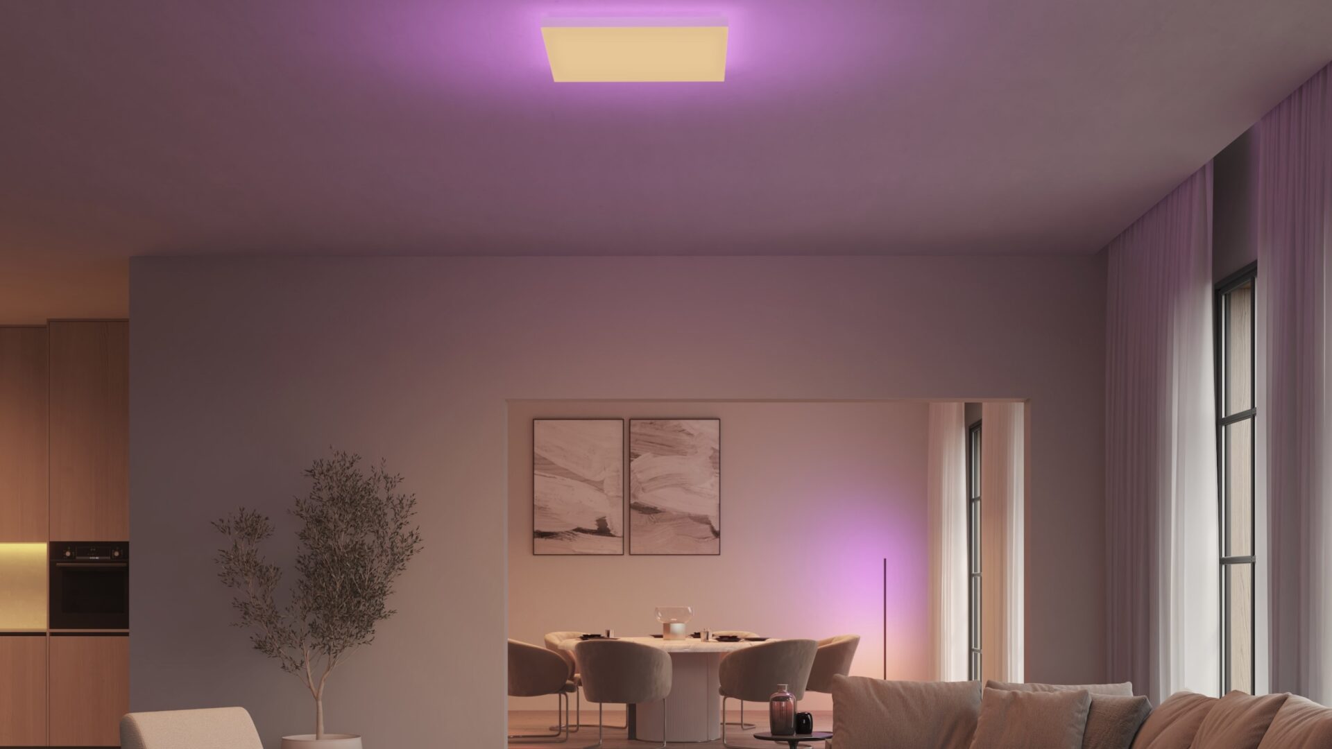 I sommer lancerede Philips Hue de runde loftslamper Datura og Tento. Nu suppleres Datura med kvadratiske og rektangulære former, og Tento kommer som kvadrat i to størrelser. Datura har en rammeløs profil, som gør den slank og velegnet til rum med lav loftshøjde. Den har to lyskilder, som kan lyse i forskellige farver og styres individuelt. Tento fås i størrelsen 30 og 40 cm og kan give fra varmt hvidt til koldt hvidt lys eller farvet lys.