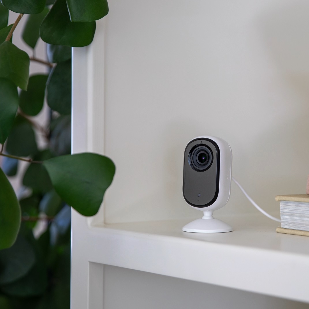 Arlo Essential Indoor har understøttelse af tovejslyd, en indbygget sirene, nattesyn, et 130-graders synsfelt og et indbygget linsedæksel, der automatisk skjuler kameraet, når brugeren er i hjemmet.