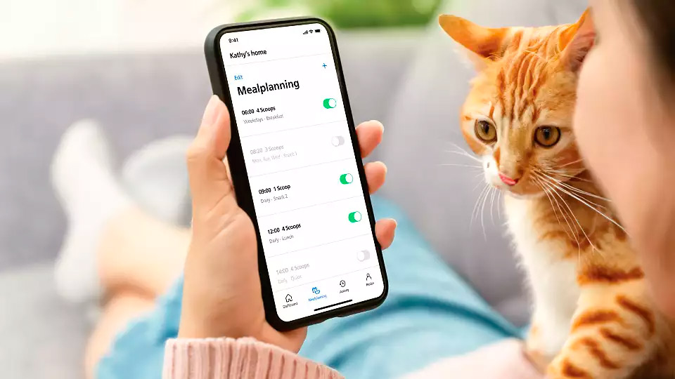Philips Smart Feeder med kamera er et opkoblet produkt, der styres via Philips Pet Series-app’en (Android/iOS), hvor du kan planlægge nøjagtige portioner på forhånd og følge dit kæledyrs fodringsplan. Du kan også se dit kæledyr i realtid via app’en og sågar tale med det via tovejs stemmefunktion. App’en giver dig også mulighed for at modtage meddelelser direkte på din mobiltelefon, så du kan holde øje med dit kæledyr, selv når du ikke er hjemme.