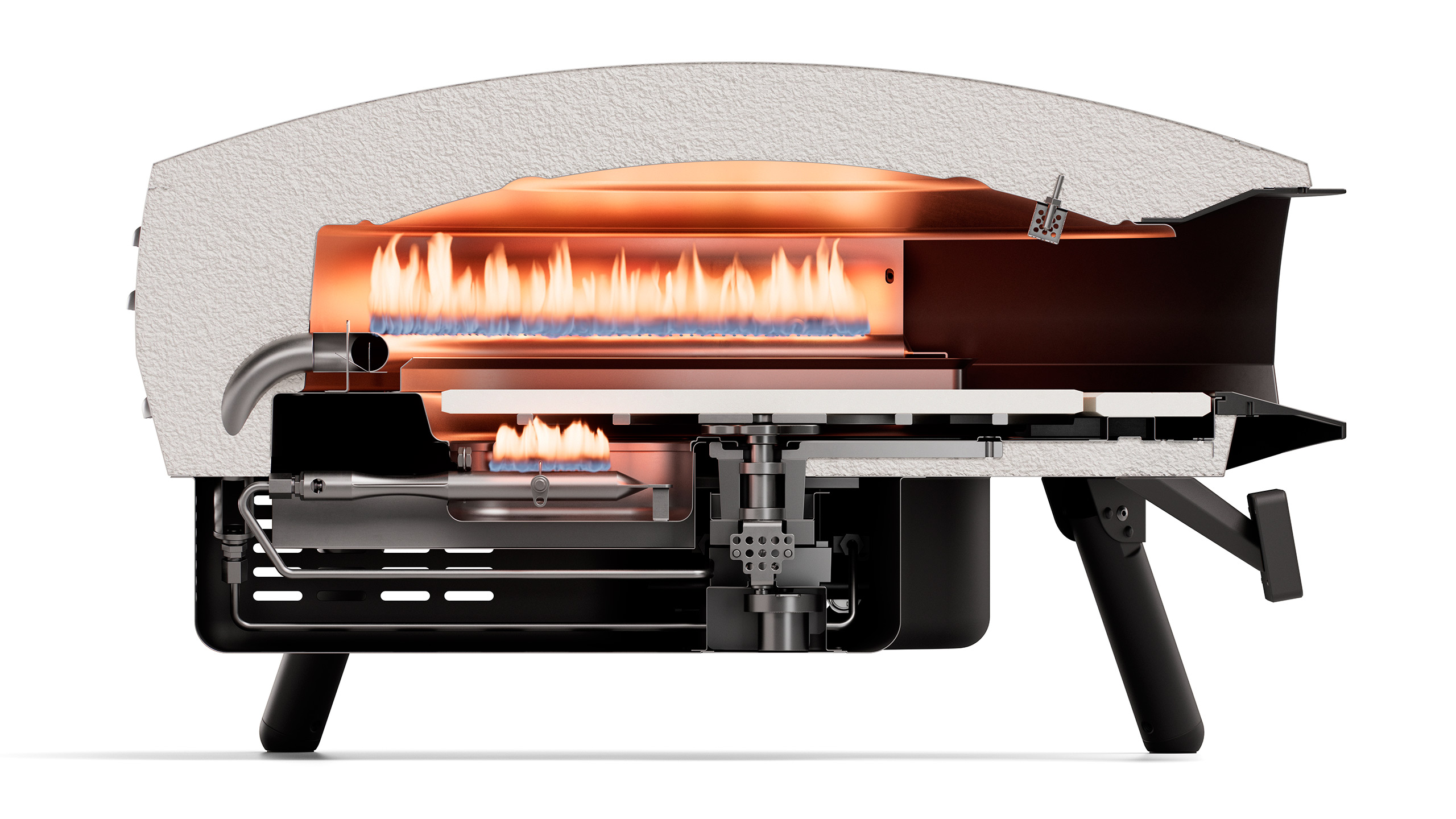 Den nye Etna Rotante Control 16″ bliver flagskibet i Witts serie af pizzaovne, der nu består af fem modeller. Den er udstyret med en roterende pizzasten og en U-formet hovedbrænder, der sikrer jævn varme hele vejen rundt, samt en ekstra boosterbrænder under stenen, der holder ovnens temperatur, så man kan bage flere pizzaer i træk uden at miste varme.