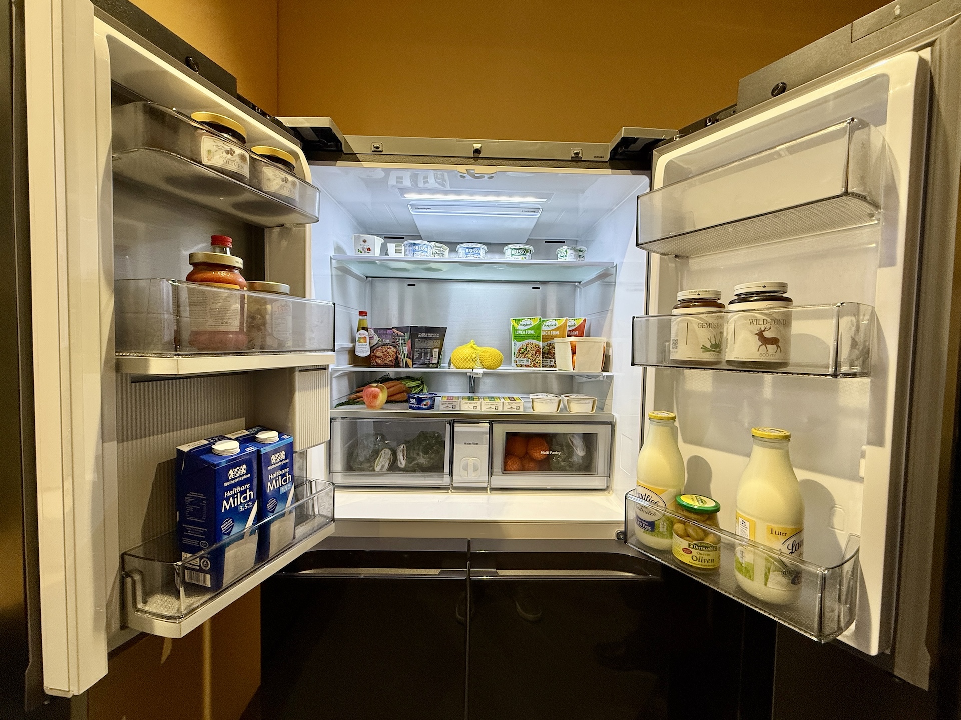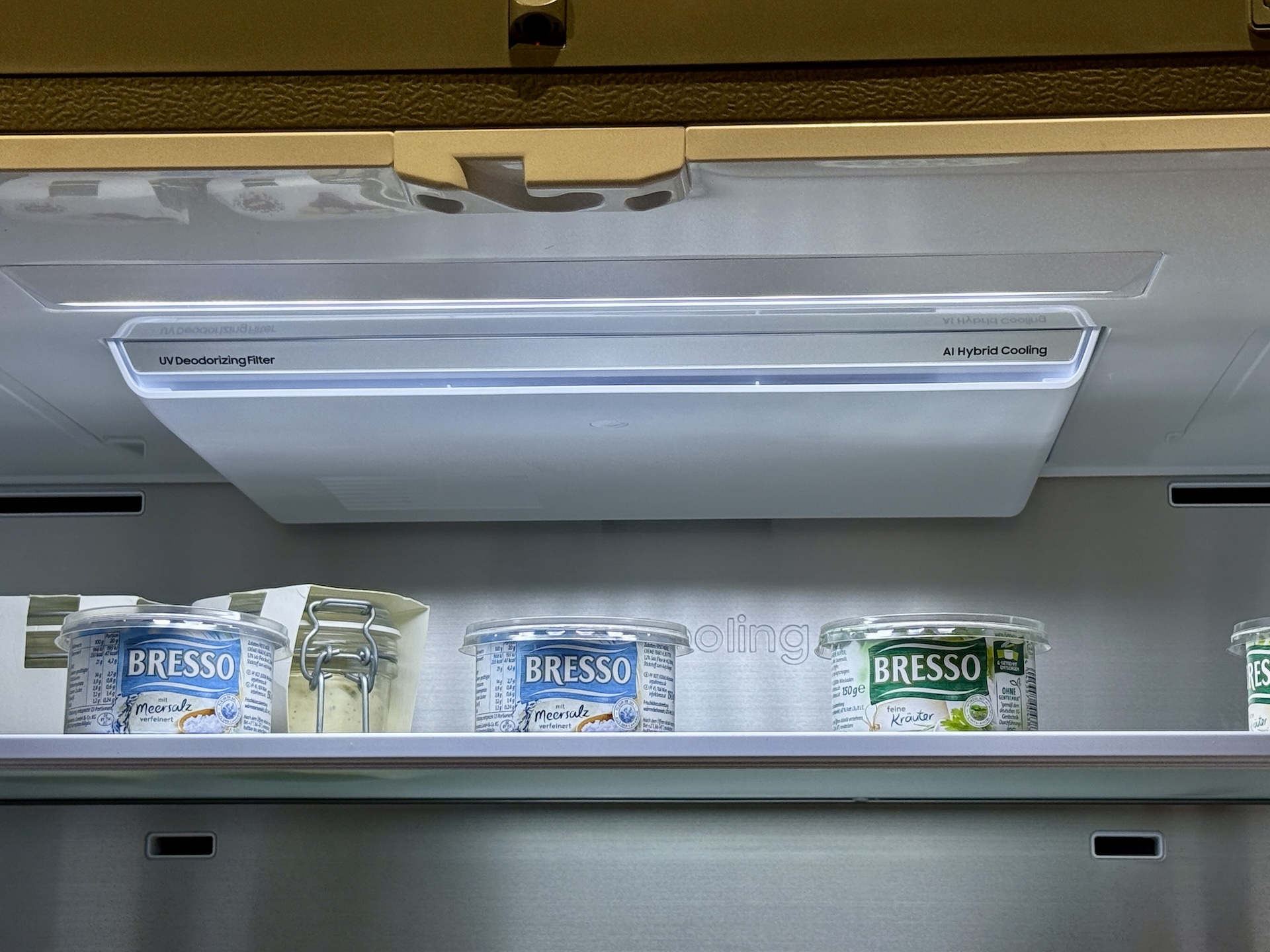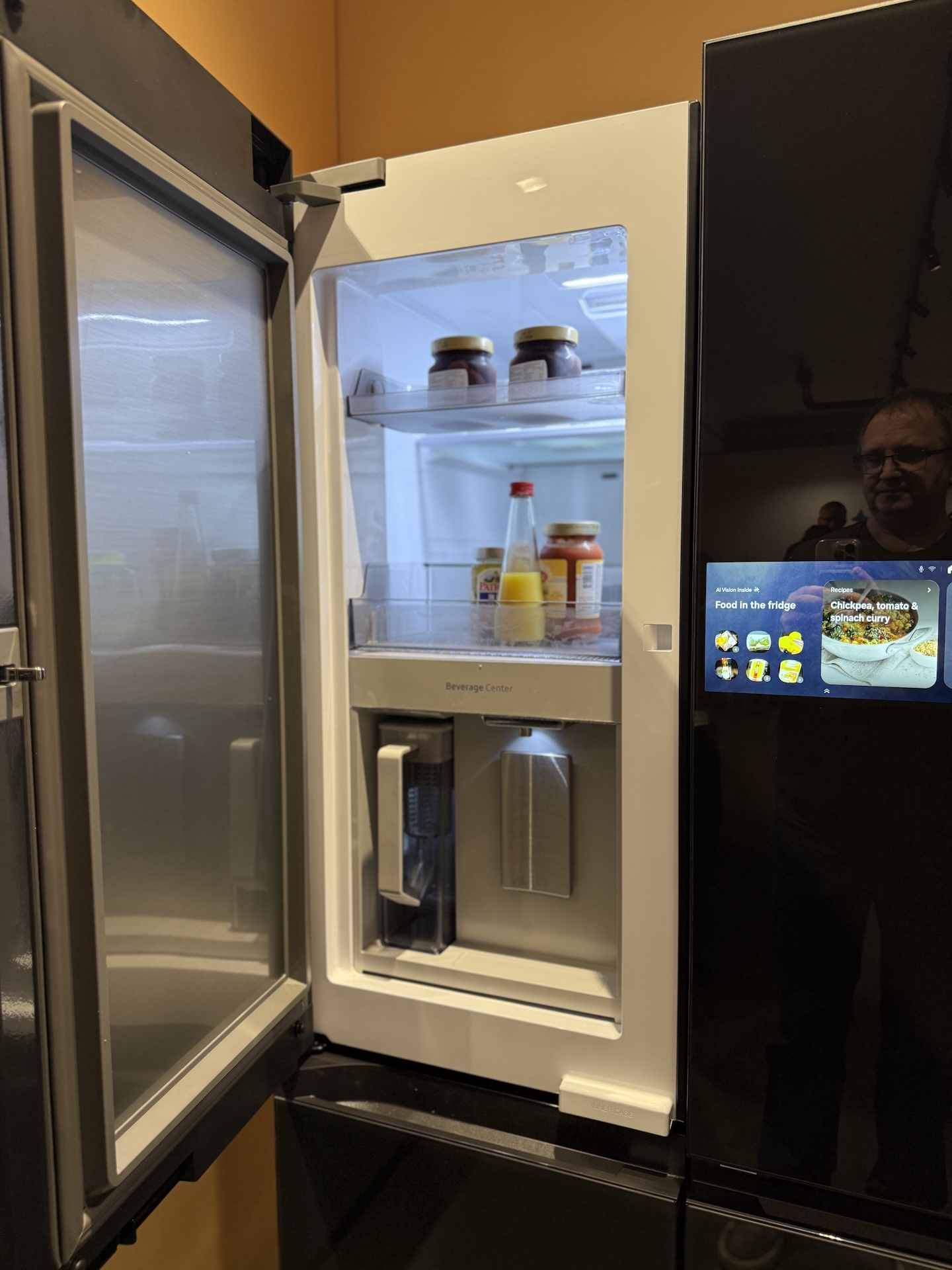 I stedet for den 21,5 tommer store “Family Hub”-skærm har de en 9 tommer stor “AI Home”-skærm. De tilbyder funktioner inden for områderne mad, hjem, familiekommunikation og underholdning. Den første kategori har en opgraderet AI Vision Inside, hvilket betyder, at kameraet nu genkender flere typer mad. Det betyder, at det automatisk kan holde styr på, hvad du lægger i og tager ud af køleskabet. Baseret på det kan det foreslå retter, du kan lave med det, der er i køleskabet, og gøre det lettere at huske, hvad der skal købes. Kameraet kan nu også lære at genkende ikke bare friske ingredienser, men også færdige retter.