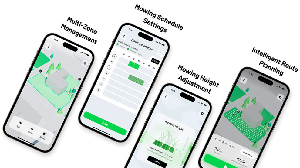 Den er IPX6- vandresistent og har en luge i toppen, så man slipper for at vende den på hovedet, når den skal spules ren med en haveslange. Den skulle også kunne klippe så tæt som 51 mm fra mure eller stakitter, og klippehøjden kan justeres mellem 20-101 mm (via en app, hvor man også kan skemalægge klipning m.m.).
