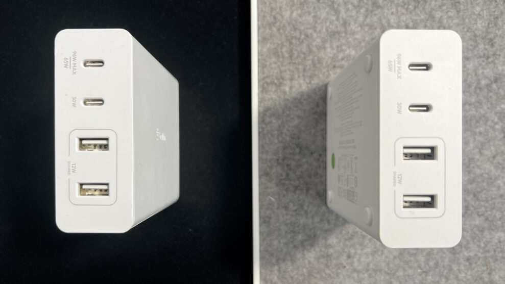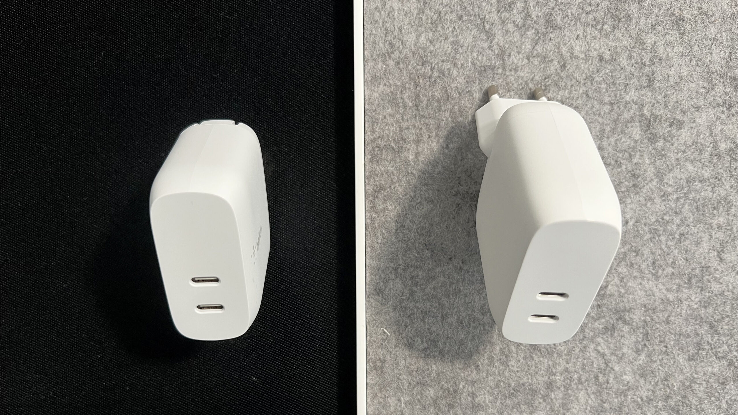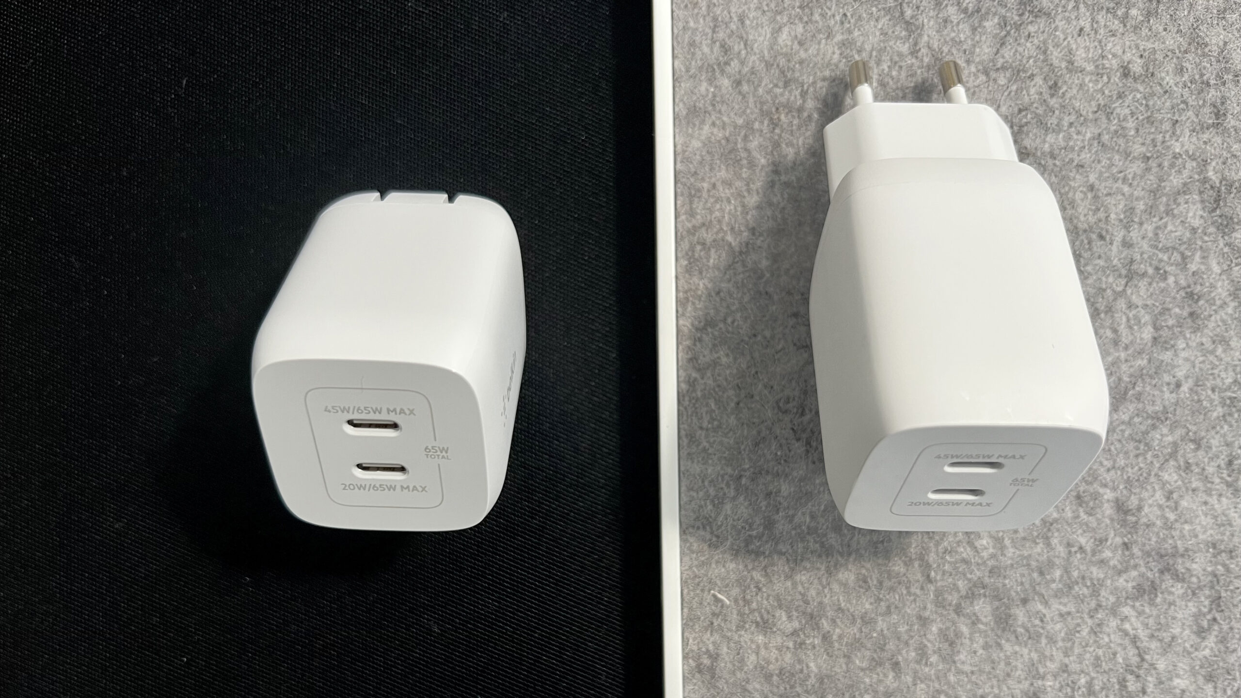 - Boost Charge Pro 45 watt dobbelt USB-C GaN vægoplader med PPS. Mindre end 40-watt’eren p.g.a. GaN-teknologien, som er halvledere af højere tæthed og dermed kan gøres mindre.