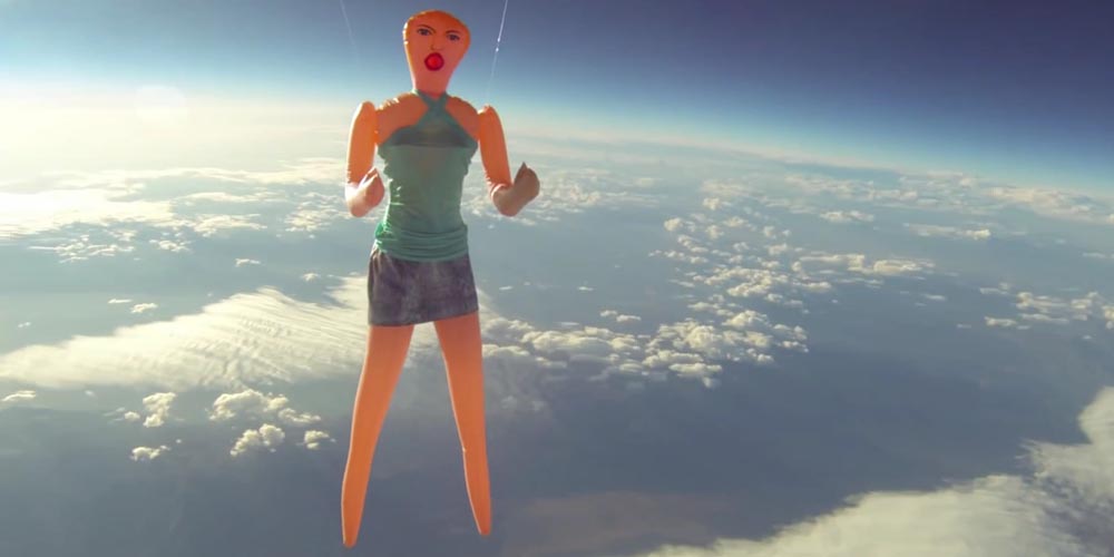 Dukken ved navn Missy fik den 16. december æren af at være den første lolitadukke, som blev sendt op i stratosfæren med en vejrballon, takket være voksenunderholdningsselskabet CNV.com. Dukken var til lejligheden fuldt påklædt. Det er jo f… koldt derude!