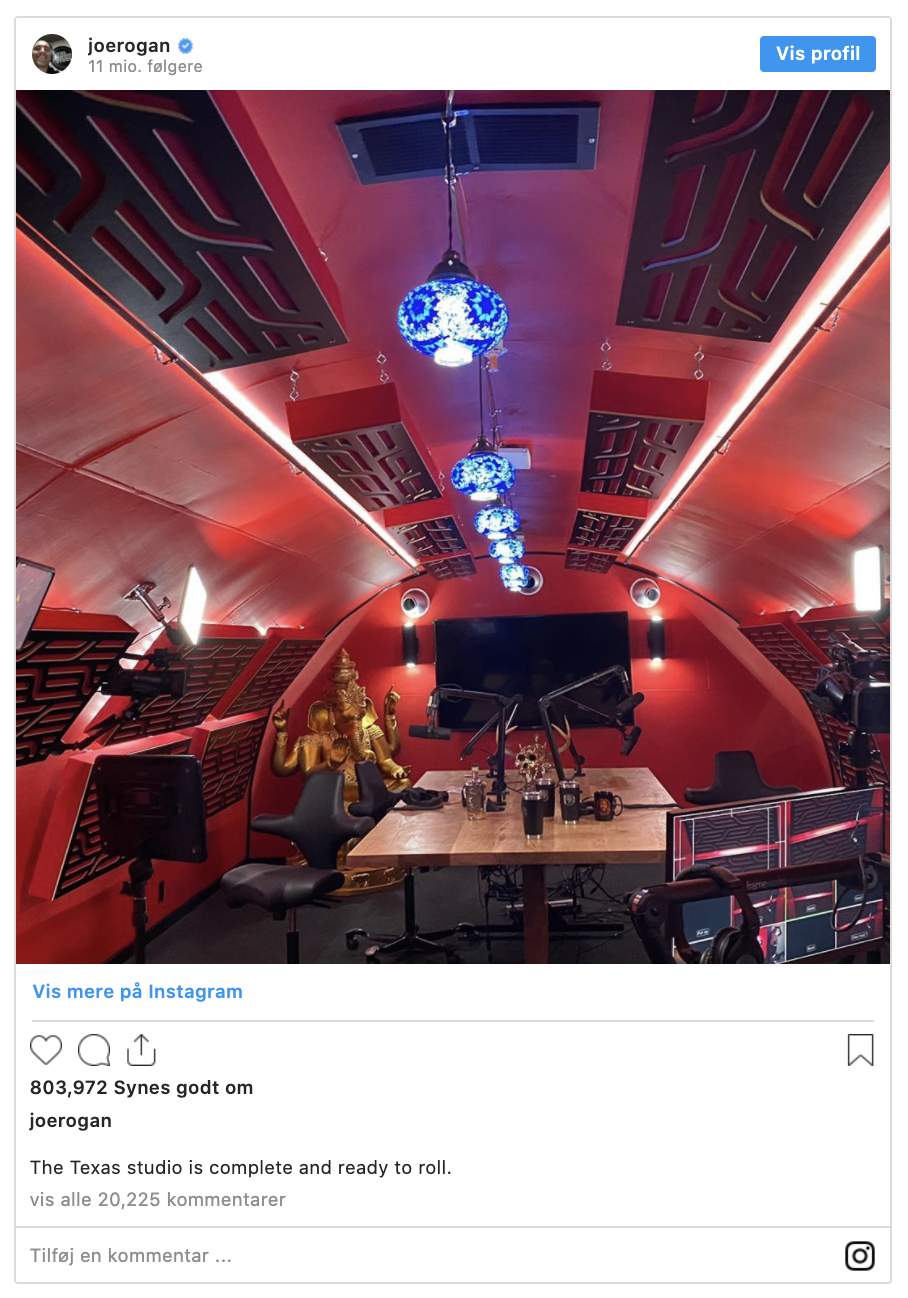 Joe Rogan annoncerede for nylig, at han flyttede fra Californien til Texas. I den forbindelse har han fået bygget et helt nyt podcast-studie, og designtemaet er … knaldrødt!