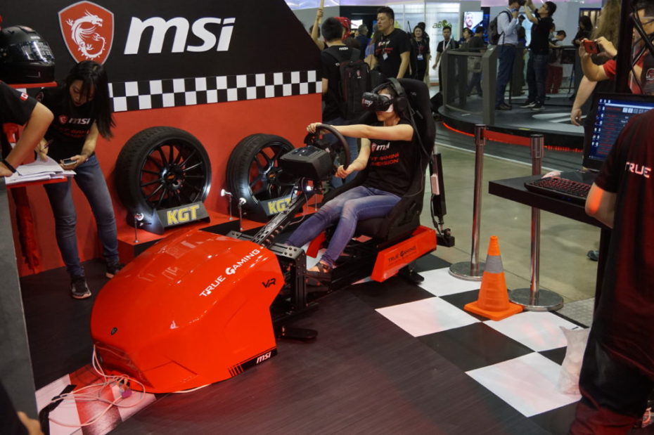 Hos MSi kunne man prøve både bilsimulator, virtuelle rutsjebaneture og zombiejagt i det kunstige univers. Ud over at være et trækplaster gav det lejlighed til at vise nogle af de VR-duelige computere frem. Faktisk har alle firmaets nyere gamings-pc’er bogstaverne “VR” i navnet for at signalere, at de godt kan trække et VR-headset som HTC Vive eller Oculus Rift.