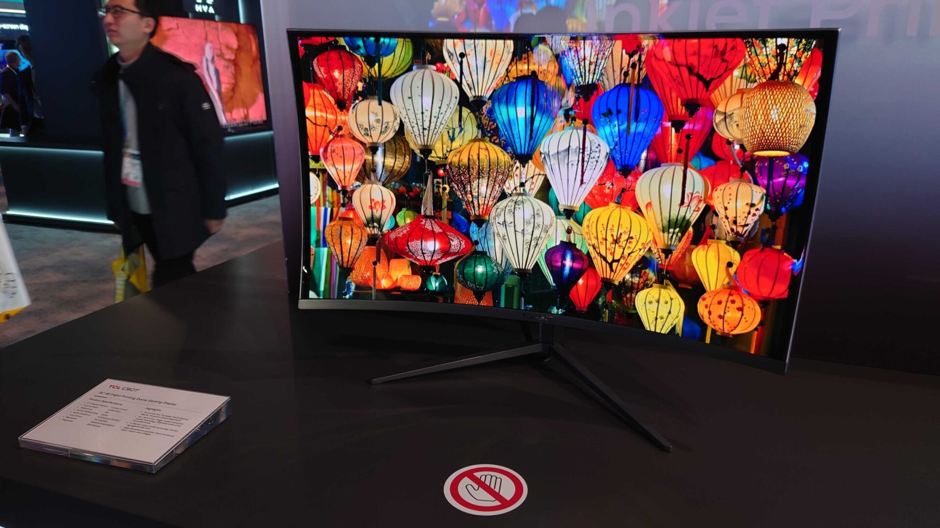 Ud over X955-serien viste TCL en række andre spændende skærme i lidt mindre størrelser, bl.a. en 31″ OLED PC-skærm, der kan bøjes til en konkav form. Den er fremstillet ved hjælp af avanceret OLED-printteknologi (IJP) og så knivskarp ud.