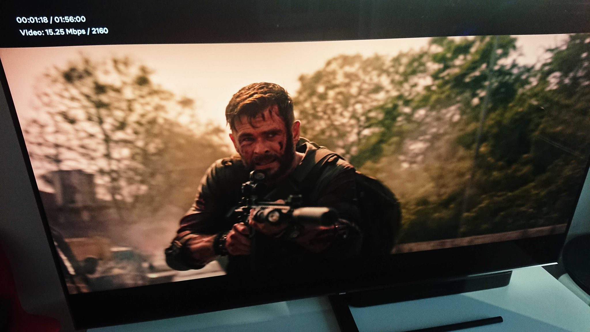 Nu ser internettet ud til at være oppe i omdrejninger igen – i hvert fald for de nordiske landes vedkommende: Lyd & Billede har tjekket Netflix-app’en på et Samsung 4K-TV og kan bekræfte, at de nu kører med op til 15,25 Mbit/s, hvilket i praksis vil sige den maksimale kvalitet, vi har været vant til. Det gør det muligt at se Netflix-film som Extraction i den bedst mulige kvalitet!