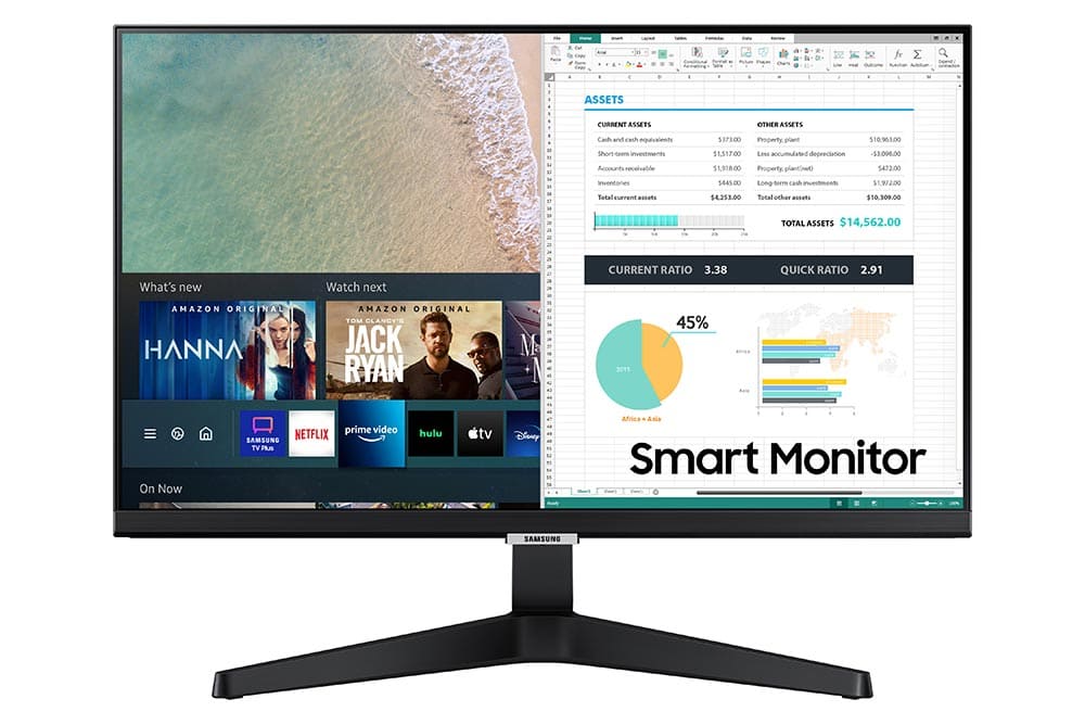 Sidste år introducerede Samsung deres nye Smart Monitor-serie af PC-skærme med indbygget smart-TV-funktionalitet. De ser til forveksling ud som almindelige PC-monitors, men har også indbyggede højttalere, fjernbetjening og en grafisk brugerflade med streaming-apps som Netflix og YouTube integreret. Dermed duer de fint til både arbejde og afslapning.