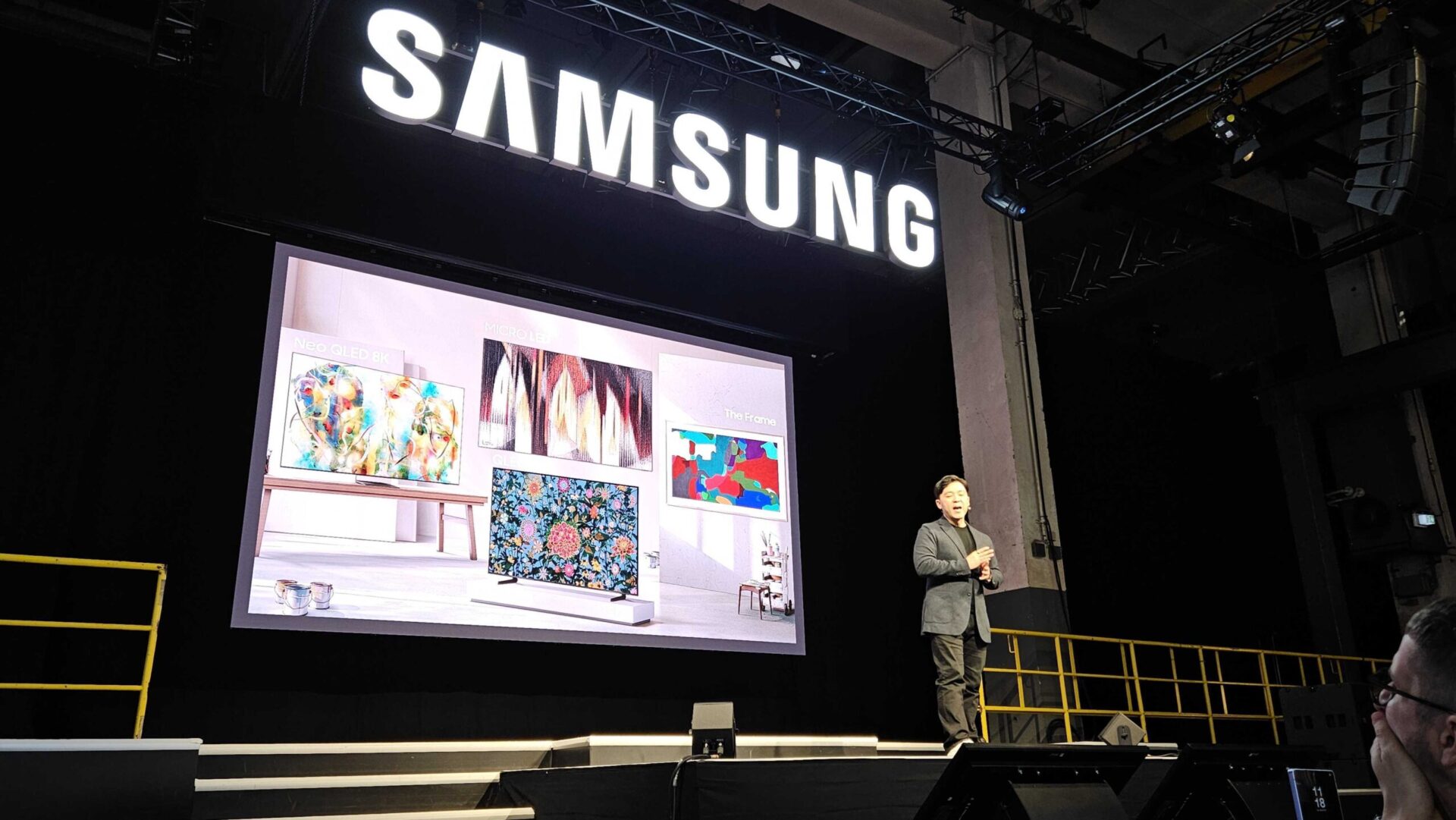 Frankfurt/ Lyd & Billede: Samsung Electronics løftede i dag sløret for sine nye TV- og lydprodukter. Ved begivenheden »World of Samsung« i Frankfurt, Tyskland, fik vi mulighed for at se nogle af virksomhedens seneste innovationer inden for TV og lyd. Flere af disse stiftede vi allerede bekendtskab med på CES i Las Vegas i januar, men nu får de europæiske – og nordiske – modeller deres debut. Præsentationen blev åbnet af Benjamin Braun fra Samsung, som forklarede, at mange af produkterne bruger kunstig intelligens (AI) til at forbedre billed- og lydoplevelsen på forskellige måder.