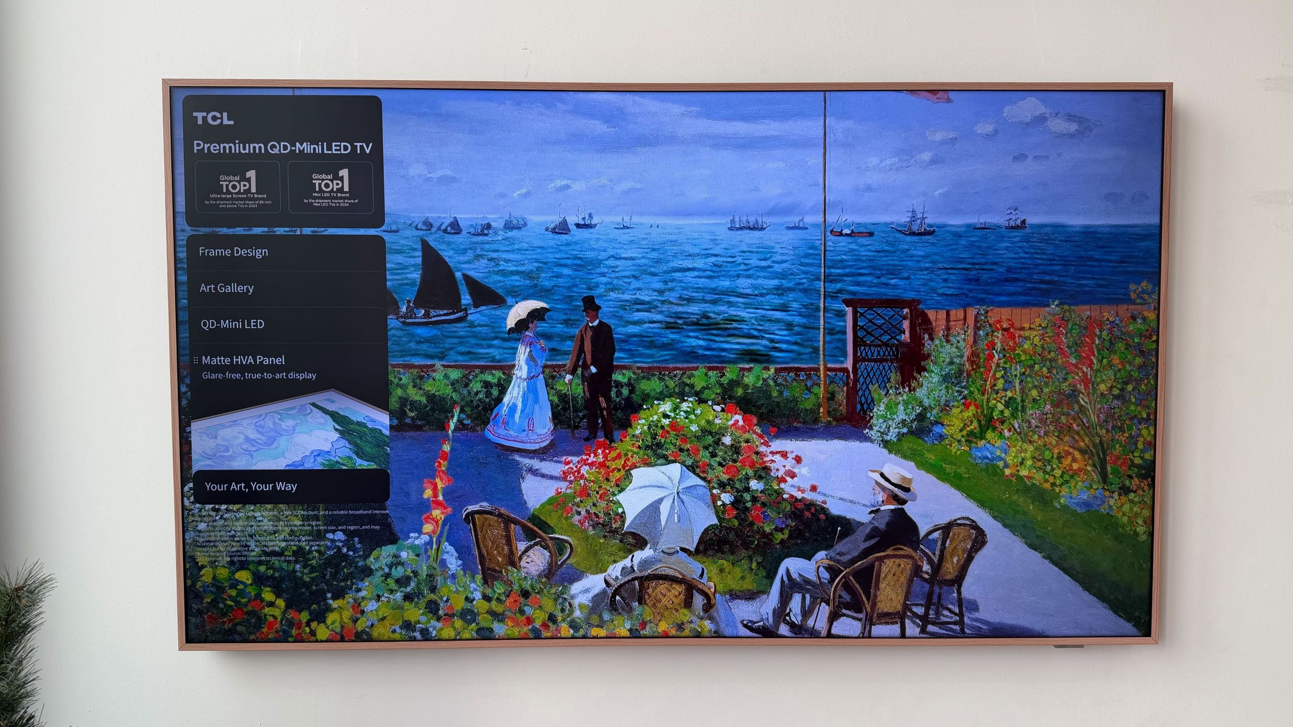 Derudover præsenterer TCL A400 Pro NXTVISION, en ny version af deres velkendte design-TV, som nu får QD-Mini LED-teknologi med lokal dæmpning. Skærmen har nu op til 448 dæmpningszoner, hvilket forventes at give dybere kontrast, mere lys og naturtro farver end kant-LED-varianterne. TSR AiPQ-videoprocessoren optimerer kontrast, farver og bevægelse i realtid, og med 4K 144 Hz/288 Hz håndterer TV’et både hurtige sportssekvenser og gaming. TCL vil tilbyde et integreret kunstgalleri, Dolby Atmos/Onkyo 2.0-lyd og et slankt design, der ligner et indrammet billede.