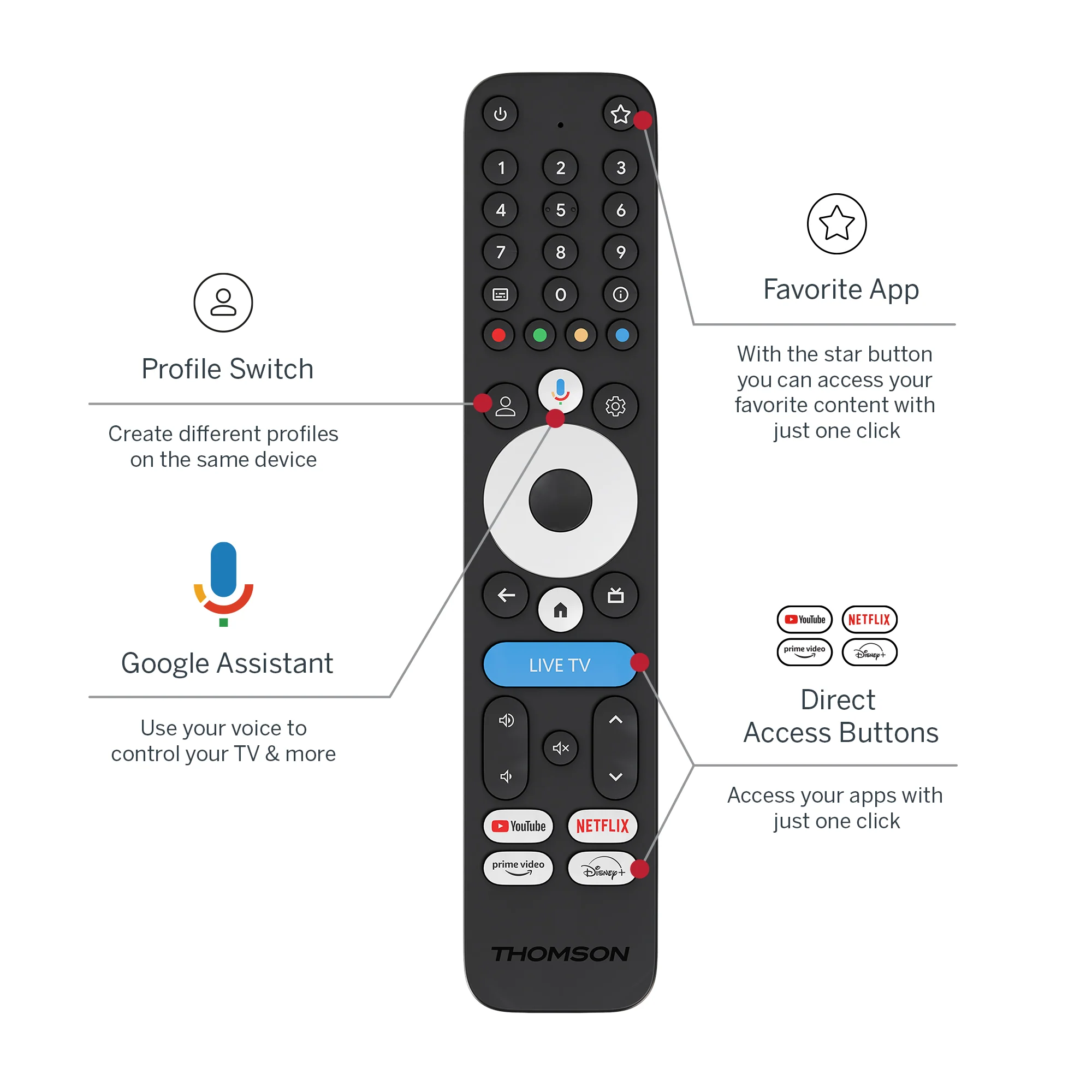 Thomson Streaming Box 245 understøtter naturligvis 4K Ultra HD-opløsning og giver adgang til streamingtjenester via Google TV-platformen. Her samles indhold fra tjenester som Netflix, Prime Video, YouTube, Disney+, Spotify og lokale tjenester som NRK, SVT og DRTV i én samlet brugerflade. Flere brugerprofiler gør det muligt at modtage personlige anbefalinger til hvert familiemedlem. Den opgraderede hardware bør derfor sikre smidig navigation mellem apps og stabil afspilning i høj opløsning.