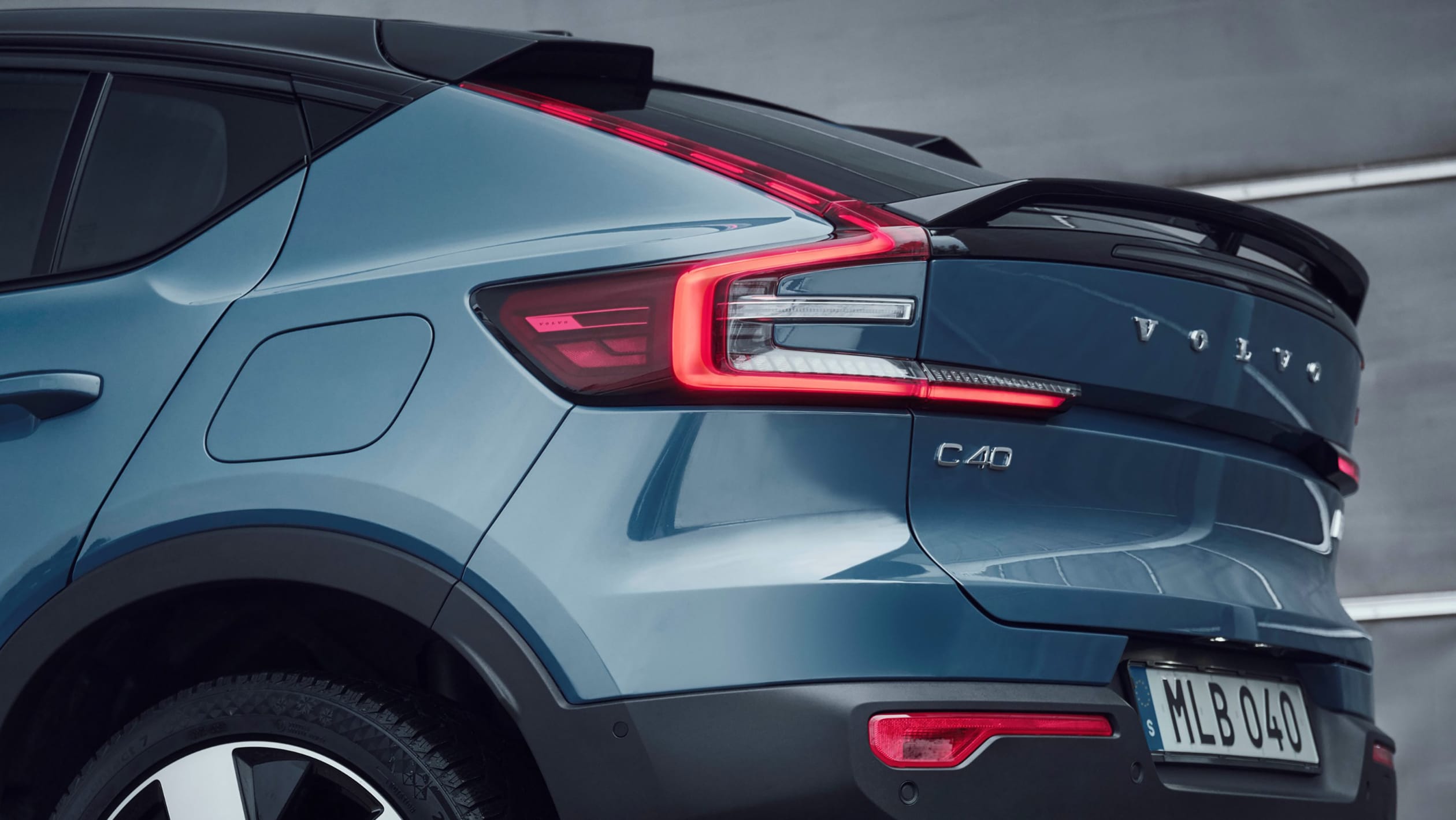 C40 Recharge er en relativt højrejst crossover/SUV, som har hentet meget DNA fra XC40 Recharge, men med en mere sporty taglinje, der ender i en hækspoiler.