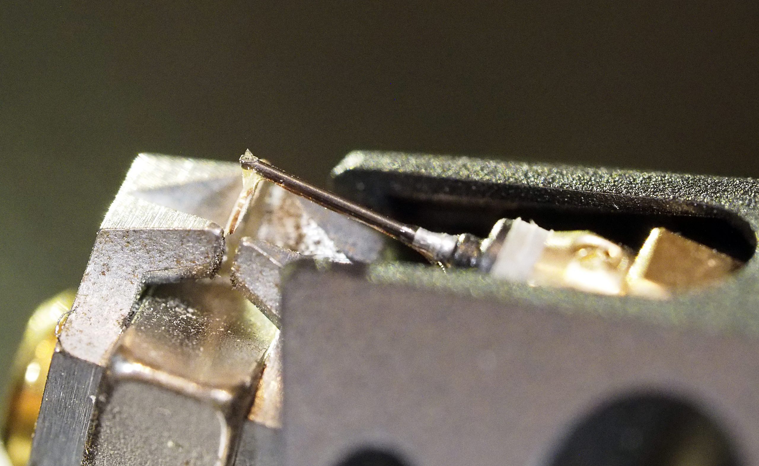 Hvis man kigger på nålearmen af boron under et mikroskop, kan man se de koncentriske viklinger på de to spoler placeret oven på armen og små kobbertråde, der strækker sig langs den ind i pickuphuset. Som er af fræset titanium med støbt aluminium og polymermateriale.