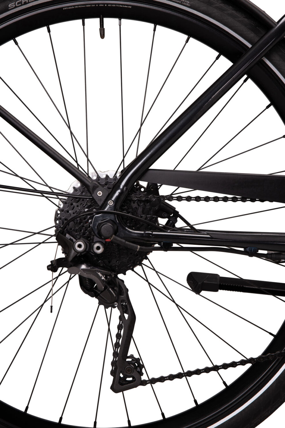At det er en elcykel, er ikke lige til at se. Batteriet er gemt væk i stellet, og der er intet display eller anden synlig elektronik til at lede tankerne den vej.