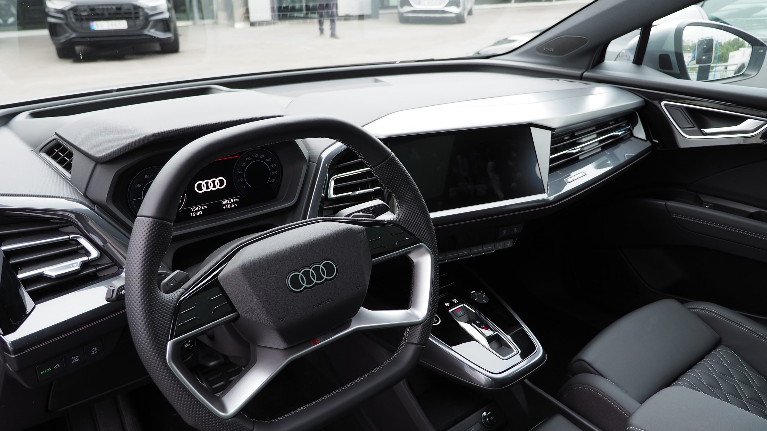 Vi kører en tur i Q4 e-tron og kan hurtigt konstatere, at selve bilen er relativt stille – godt isoleret mod vind- og vejstøj. 50-modellen med firehjulstræk er både komfortabel og hurtig.