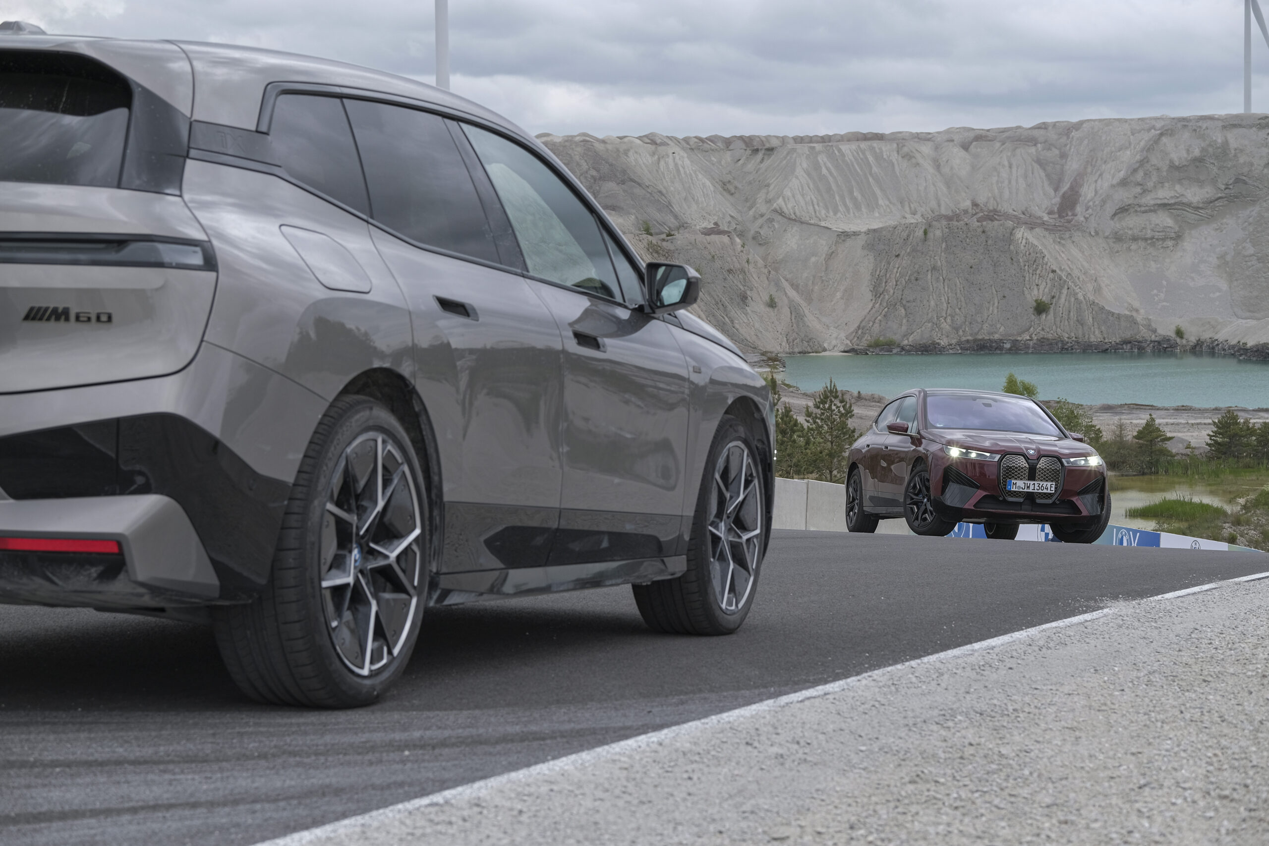 På parkeringspladsen står der en række nye BMW M3 Competition. Jeg ser naturligvis også nogle M4’er. Den lange bane med de specielle sving, fald og et hop må være perfekt for den slags biler. Længere borte står der en endnu længere række med BMW iX M60, som er en M-udgave af den allerede fremragende iX xDrive 50 og 40, en elbil, vi for nylig mente måtte være verdens bedste SUV.
