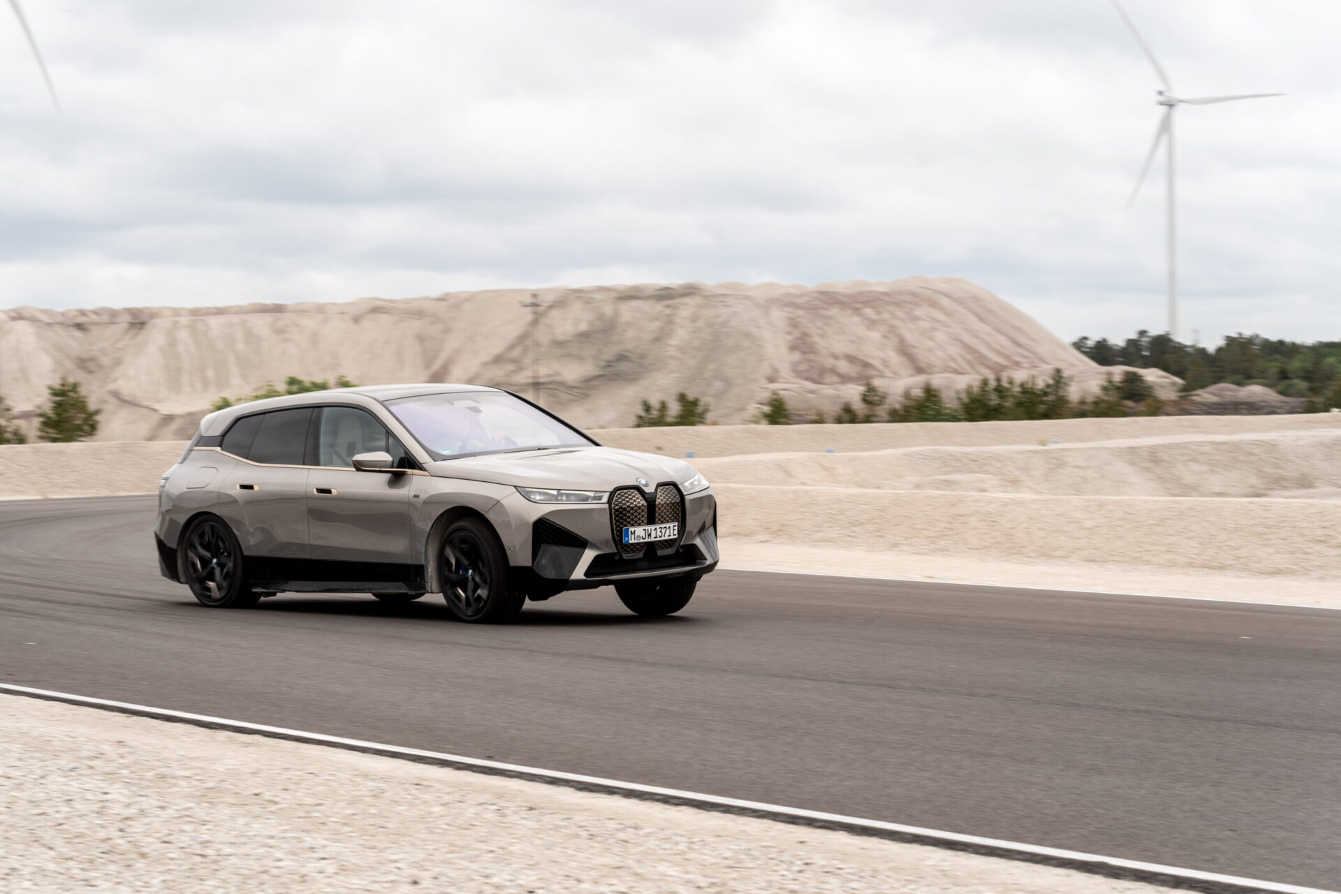 Nu står den her, til vores disposition, på en bane, hvor den slags biler hurtigt kan virke malplacerede. Men BMW mener det modsatte. For hvilket bedre sted at teste en 619 hk kraftig elbil med svimlende 1100 Nm drejningsmoment end på en hurtig bane? Bedre end på landevejen, skulle jeg hilse og sige.