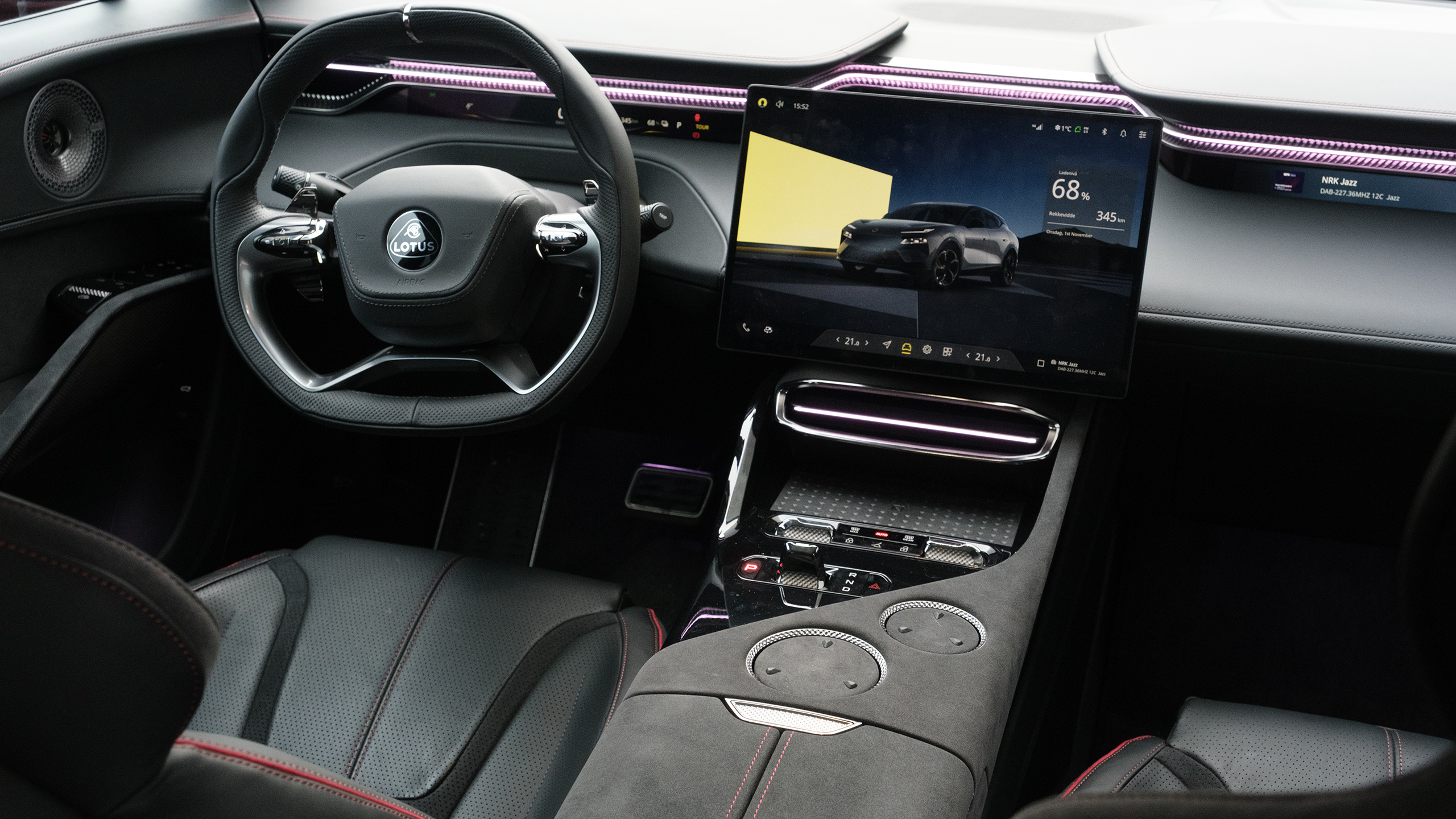 Lotus har valgt sit eget Hyper OS-styresystem, som, hvis man har kørt Tesla eller Polestar, kan virke lidt indviklet og ulogisk. Men software er i konstant udvikling, og Lotus værdsætter al feedback, siger de, så værsgo.