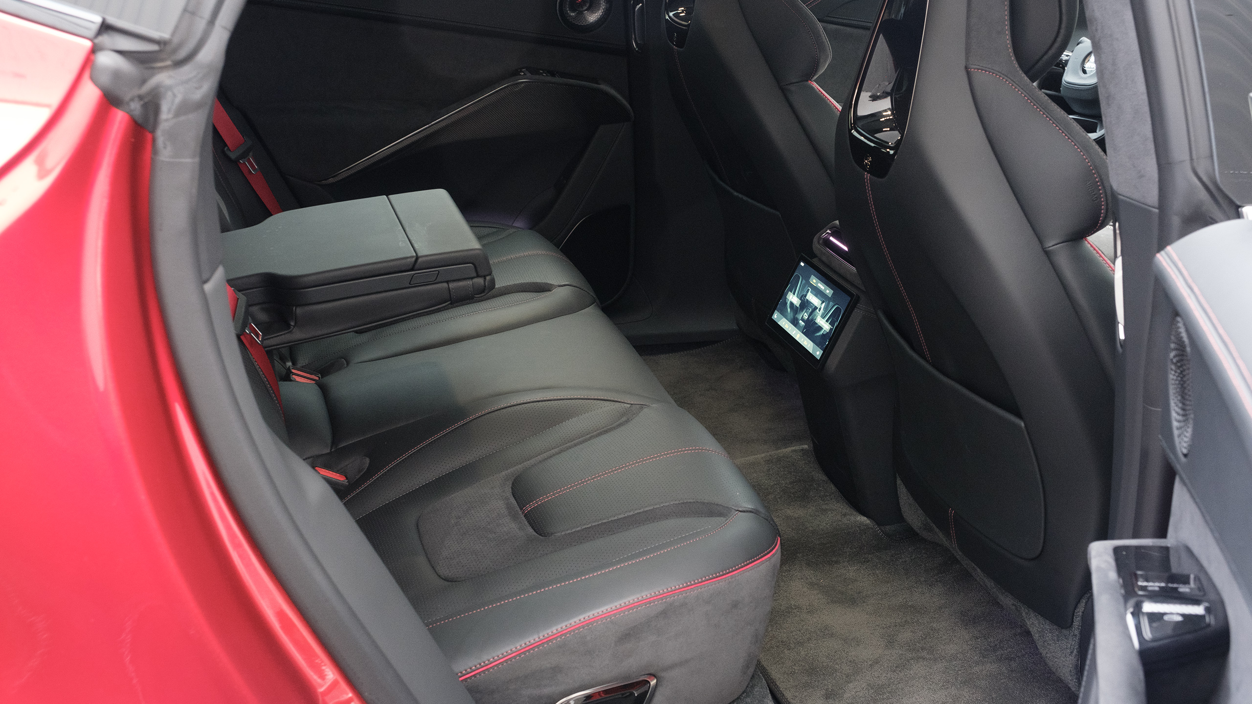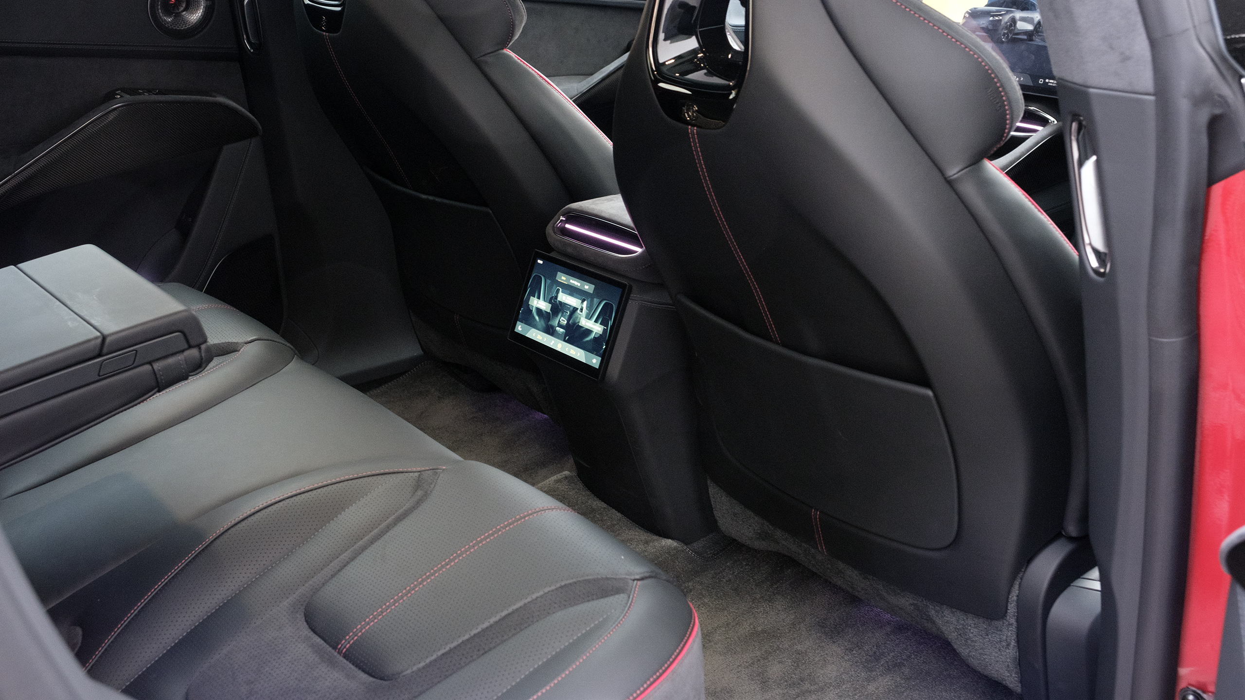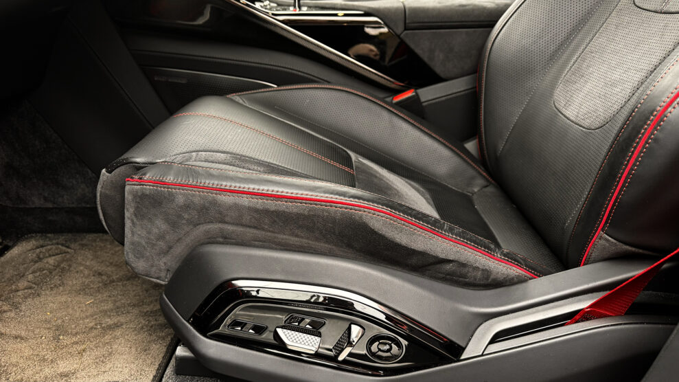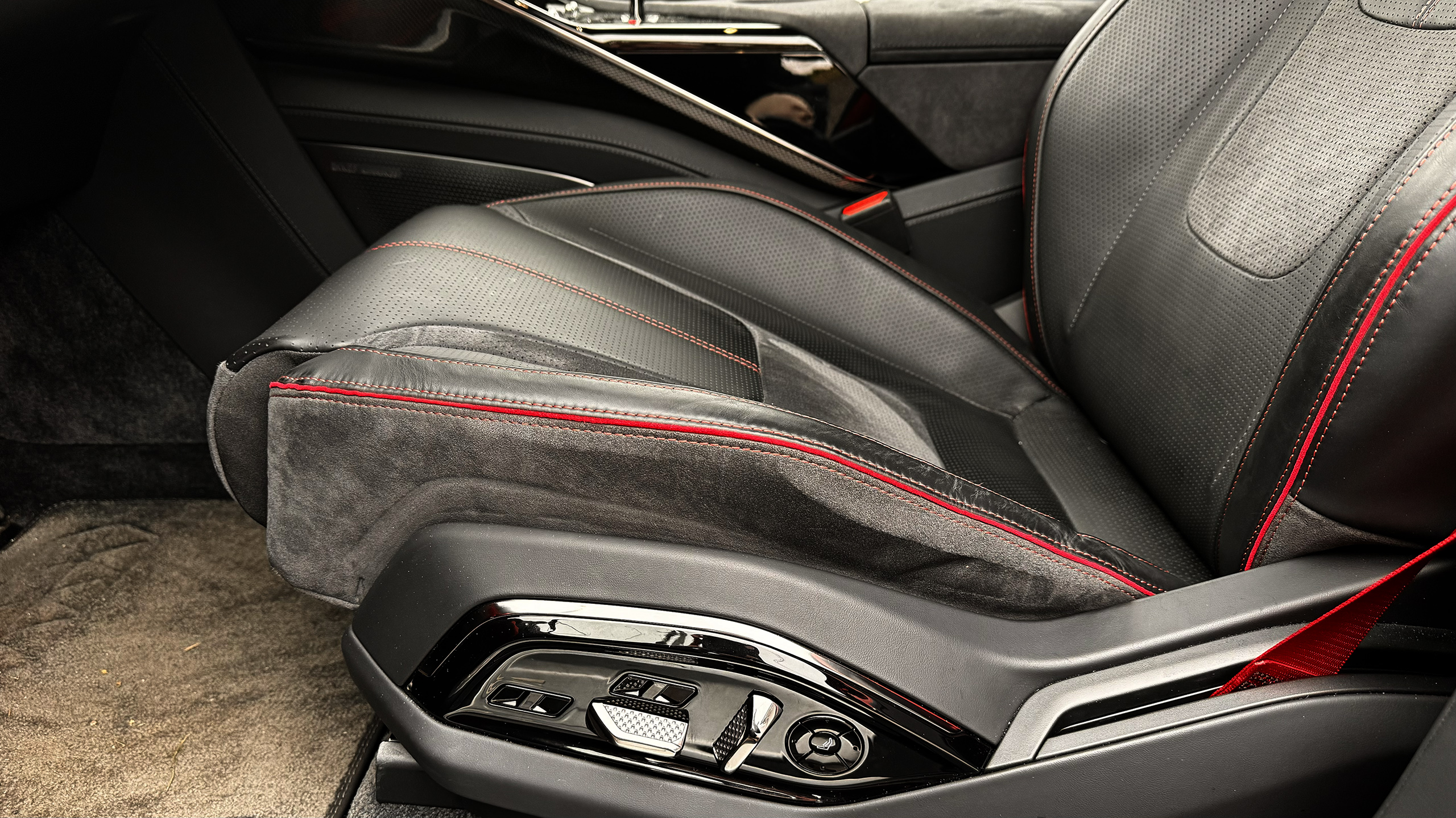 Der er meget lidt krængning i Tour-mode og endnu mindre i Sport. Som sænker og opstrammer chassiset, styreresponsen, speederresponsen og sidestøtten i sæderne på samme tid. Selv om de er hårdere end i en BMW iX, giver de meget bedre sidestøtte. De minder mere om sportssæderne i Audi SQ8 e-tron.