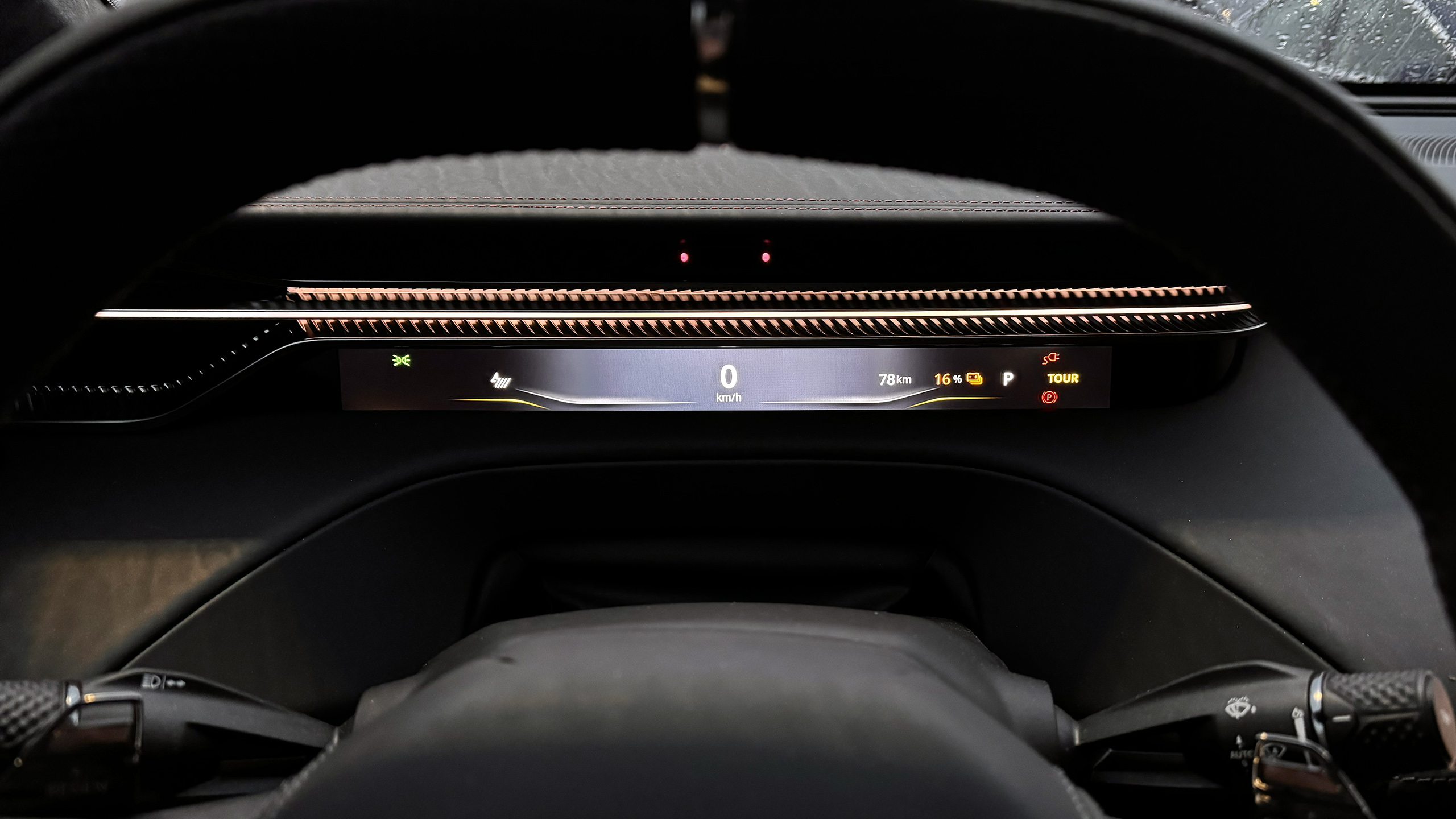 Rattet har knapper til betjening af fartpilot, medier og to par betjeningsgreb bag rattet. De to til venstre styrer regenereringen, mens de to til højre indstiller køretilstanden.