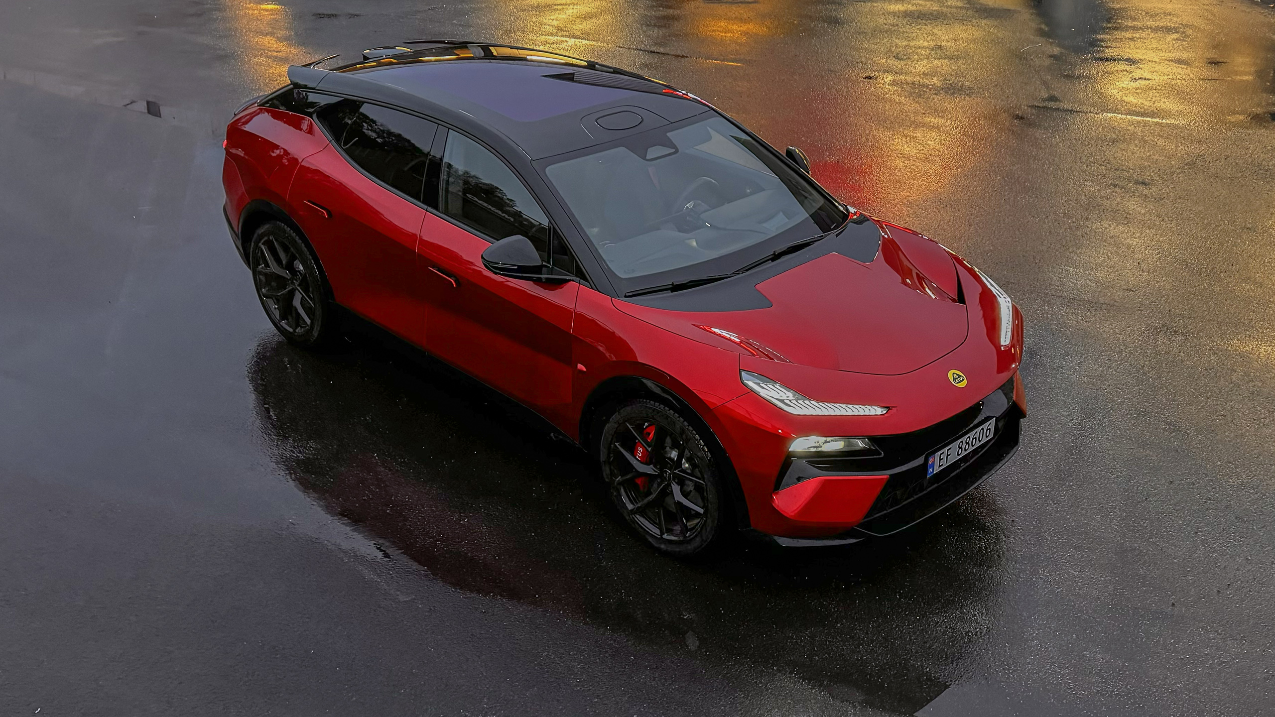 Eftersom vi har at gøre med en Lotus, er det absolut på sin plads at sige noget om køreoplevelsen. Til dem, der undrer sig: Ja, selvfølgelig kan man mærke vægten. Det gør man i alle SUV’er, også her, men den er bedre camoufleret. Styretøjet er det første, man lægger mærke til, det minder om en Porsche Taycan. Skarpt, præcist, med kort ratrespons og nuanceret feedback. Man har god føling med, hvor hjulene er, og bilen er nem at placere i svingene.