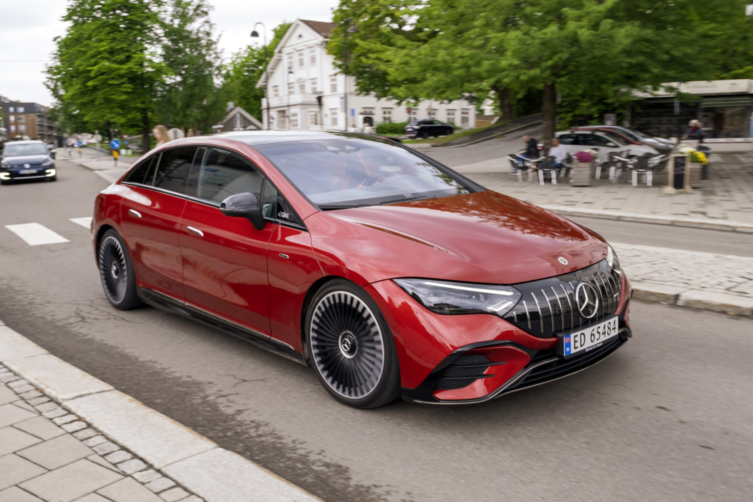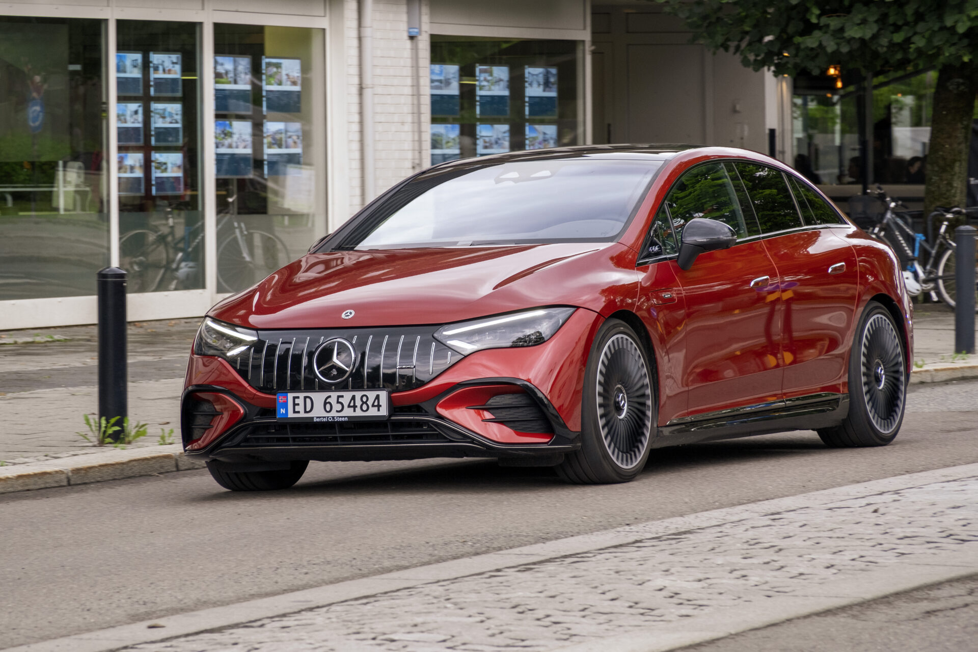 Modellen vi har lånt er en Mercedes-AMG EQE 43 4MATIC med 476 heste og 858 Nm til rådighed. Batteripakken i EQE er på 90 kWh, og rækkevidden er opgivet til at være op til 533 km (WLTP).
