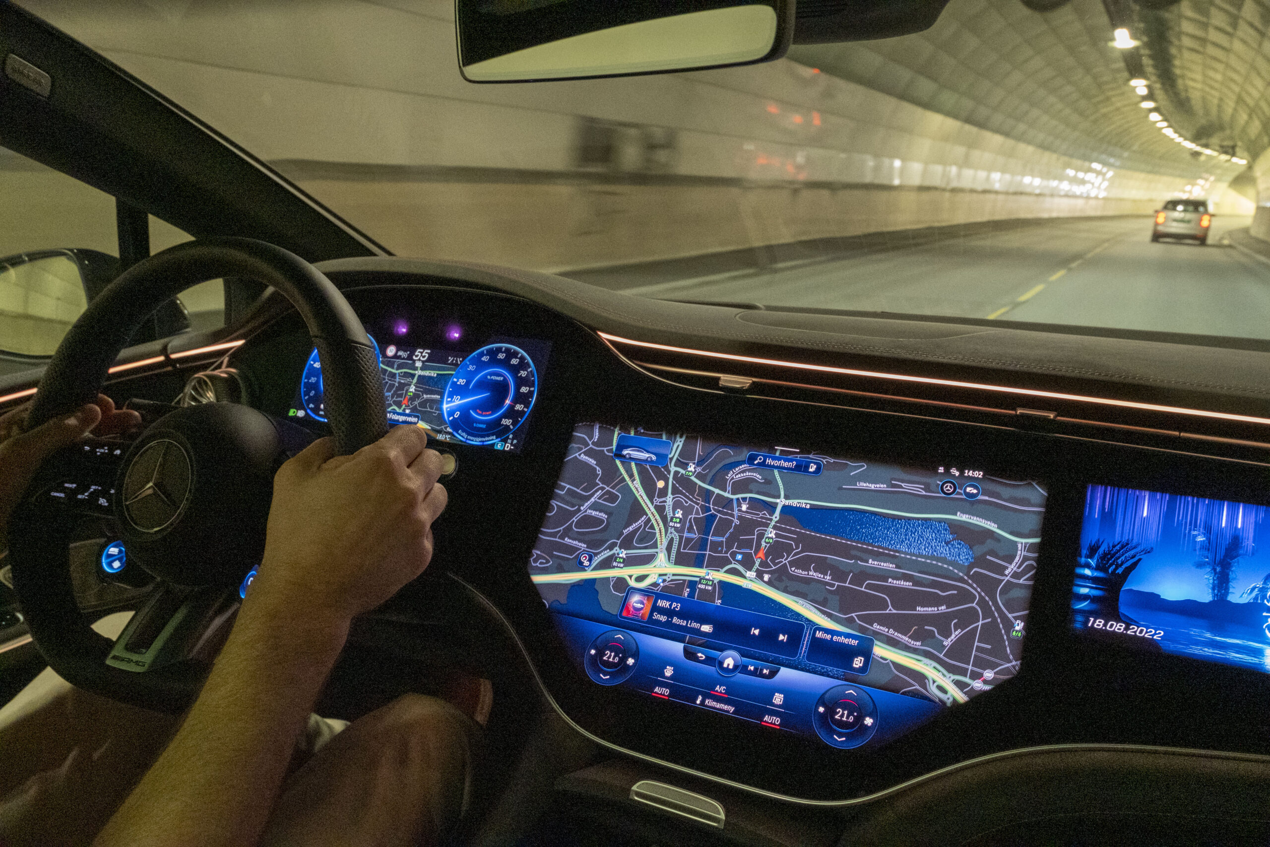 Mercedes’ egen stemmeassistent er også uvurderlig på rejsen. MBUX er stadig på forkant, når det gælder taleforståelse og responstid. Det er meget nemmere at sige “Hej Mercedes, naviger til den nærmeste ladestation” eller “tænd for radioen” end at rode med skærmen undervejs.