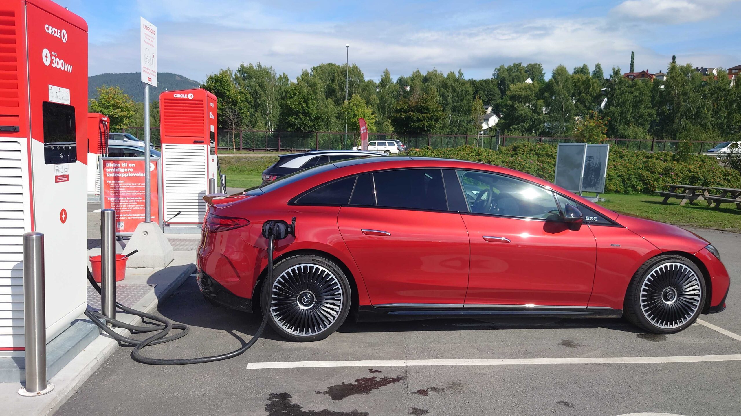 EQE 43 AMG har en upåklagelig rækkevidde. Inden vi startede testturen på omkring 200 kilometer med hastigheder på 70-110 km/t, temperaturen var omkring 22 grader) havde selve bilen en rækkevidde på omkring 440 kilometer, hvilket viste sig at passe fint, da vi til sidst vendte tilbage til hovedstaden. Bemærk, at vores testmodel var udstyret med tunge 21-tommers AMG-fælge, som sandsynligvis stjæler 40-50 kilometers rækkevidde fra det maksimale, du kan forvente.