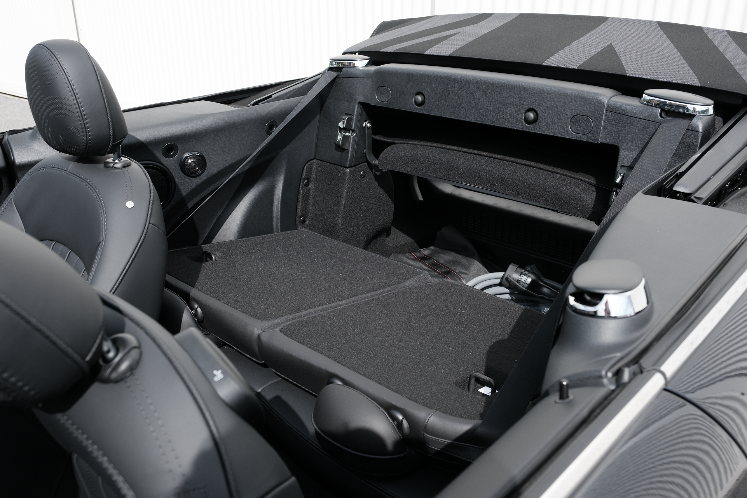 Da det elektriske stoftag ikke bidrager til karosseriets stivhed i nævneværdig grad, er bilen afstivet, så den ikke vibrerer under kørslen. Den gør dog alligevel, ligesom de fleste andre cabriolet’er, og du kan mærke bilen vibrere, hvis du kører ind i et hul i vejen. Det – og den øgede vægt – forklarer nok, hvorfor styretøjet ikke er så skarpt som på en almindelig Cooper med benzinmotor.