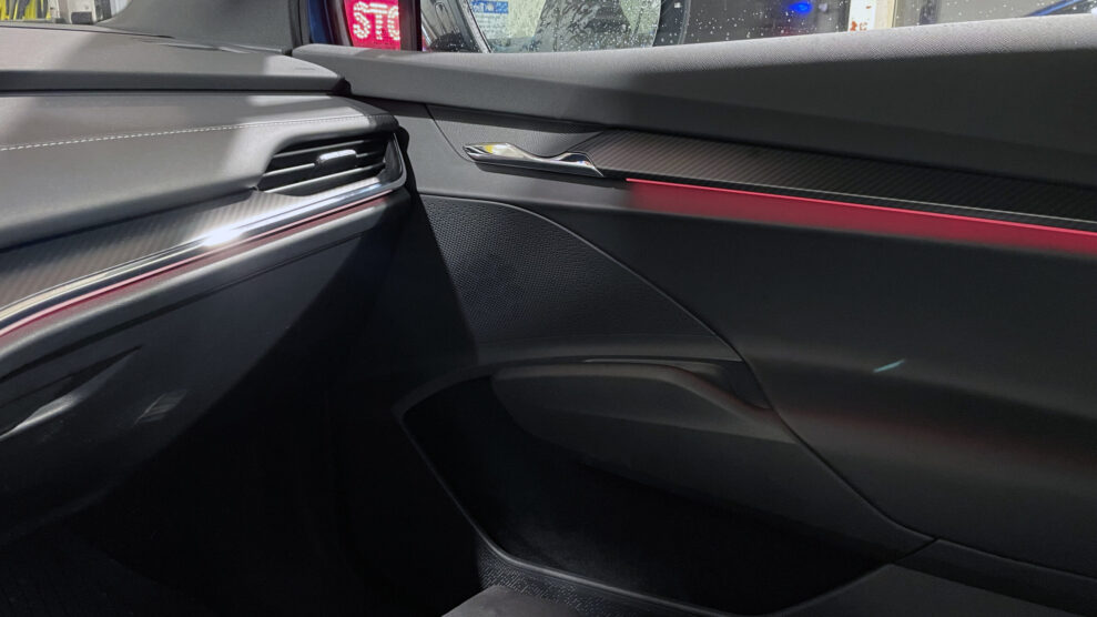 Der er i øvrigt kun ét interiørvalg, nemlig sort med sæder betrukket med en blanding af mikrofiber og læder. Det hele er ret lækkert, ikke mindst på grund af instrumentbrættet, der er klædt i sort imiteret læder med grå kontrastsømme. Og kulfiberdetaljer her og der.