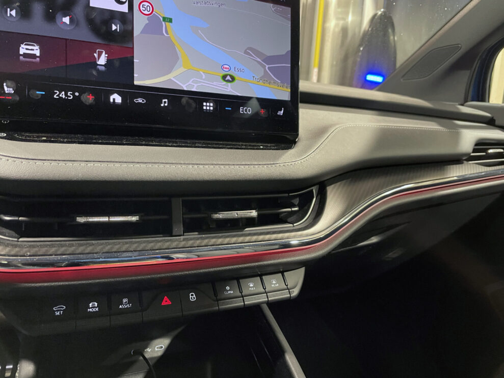 Skiltegenkendelsen lader til at være blevet forbedret, siden jeg testede min første Enyaq. Jeg oplevede i hvert fald ikke nogen skræmmende automatiske opbremsninger på motorvejen (!) denne gang.