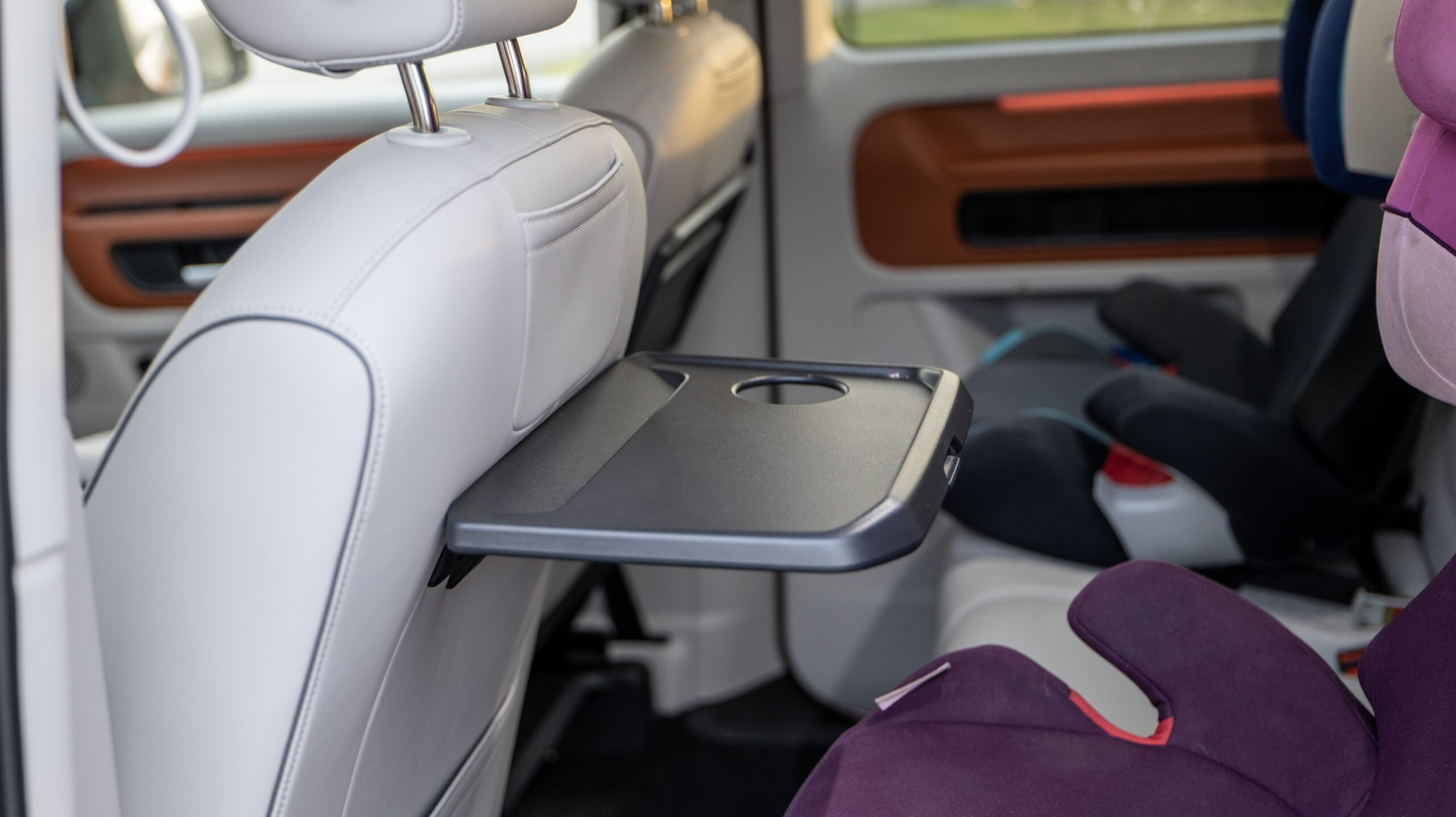 Den første af flere kommende udgaver af bilen hedder Pro, den er en baghjulstrækker med fem sæder (en firehjulstrækker og en længere variant er planlagt, men endnu ikke iværksat). Den har masser af plads til både fører og passagerer. Med mine 186 cm kan jeg fint sidde ‘bag mig selv’, og i den sædvanlige konstellation med to autostole bagi og en pænt høj hustru på passagersædet havde vi al den plads, vi kunne drømme om. Og hvilken højde til loftet! Vi tog endda et par ture med svigermor i midten bagest, mellem børnenes autostole. Det gik også fint, men det kræver et fornuftigt BMI, og selv da skal midtersædet ses som en nødløsning.