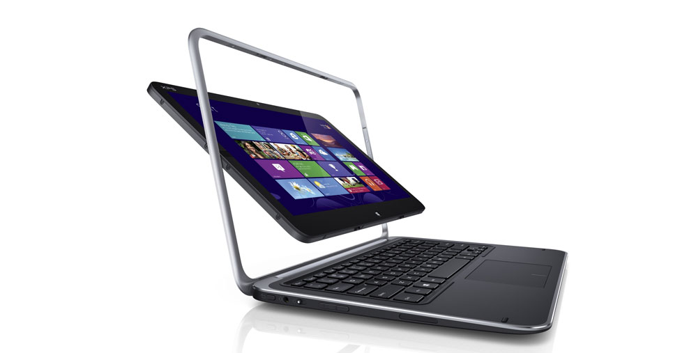 Kort og godt ligner XPS 12 umiddelbart en helt normal bærbar computer, men skærmen sidder i en robust aluminiumramme og kan simpelthen dreje sig om sin egen akse. På den måde kan man blot dreje skærmen 180 grader og klappe den bærbare sammen igen, og så har man en kraftig tablet-computer med 12,5 tommers skærm og Windows 8. Eller man kan lade være med at lukke den bærbare og lynhurtigt dreje skærmen udad, hvis man vil vise noget til andre – f.eks. til et møde. Det lyder jo næppe så fancy som to skærme, men i daglig brug er det en løsning, der ligger lige til højrebenet!