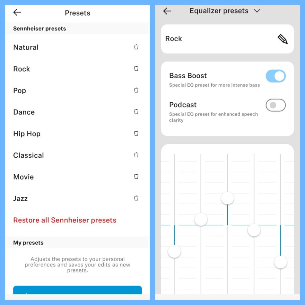 Jeg er egentlig ikke overrasket over lyden. Sennheiser er generelt fantastiske til god lyd, og dette er absolut ingen undtagelse. Klar, sprød og engagerende. Basgengivelsen kan man ikke klage det mindste over, og takket være alle de forskellige parametre på equalizeren er det altid muligt at finde en “perfekt” tilstand, uanset hvad jeg vælger at udfordre med. Imponerende!