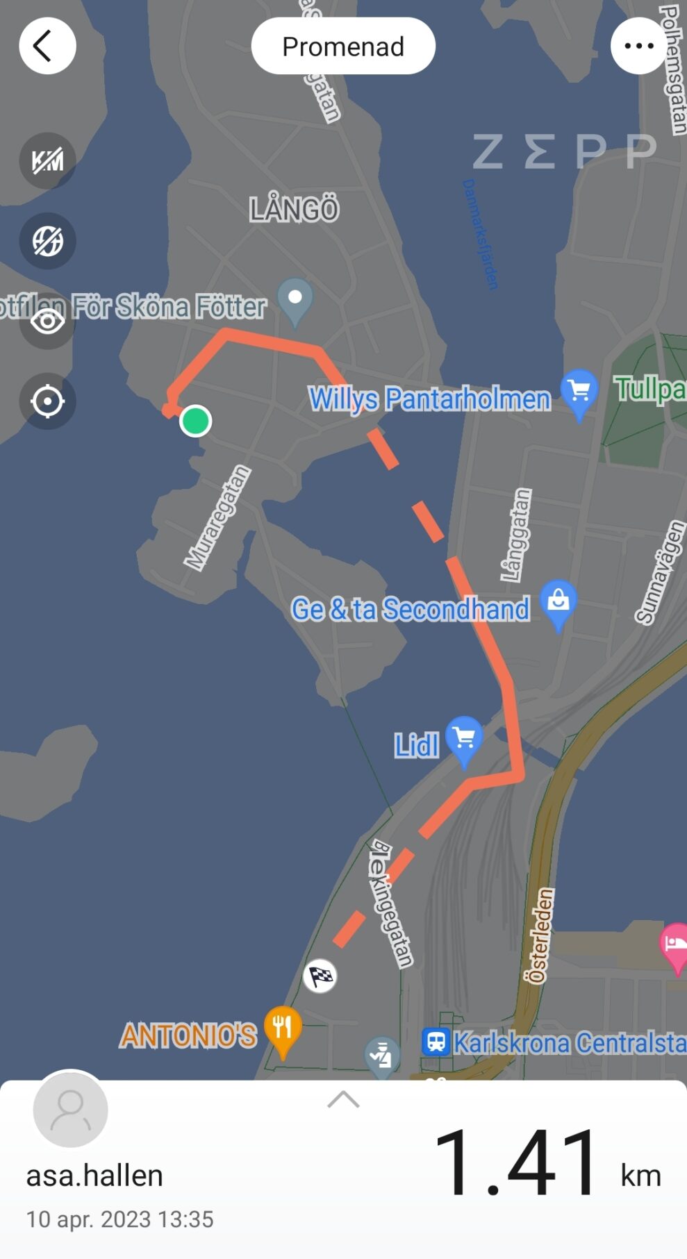 Desværre havde mit testeksemplar svært ved at finde GPS-signalet, når jeg trænede udendørs. Ideen er, at armbåndet skal bruge mobiltelefonens GPS og registrere turen, selvfølgelig forudsat at du har din mobiltelefon med dig. Men lige i dette tilfælde lykkedes det ikke helt.
