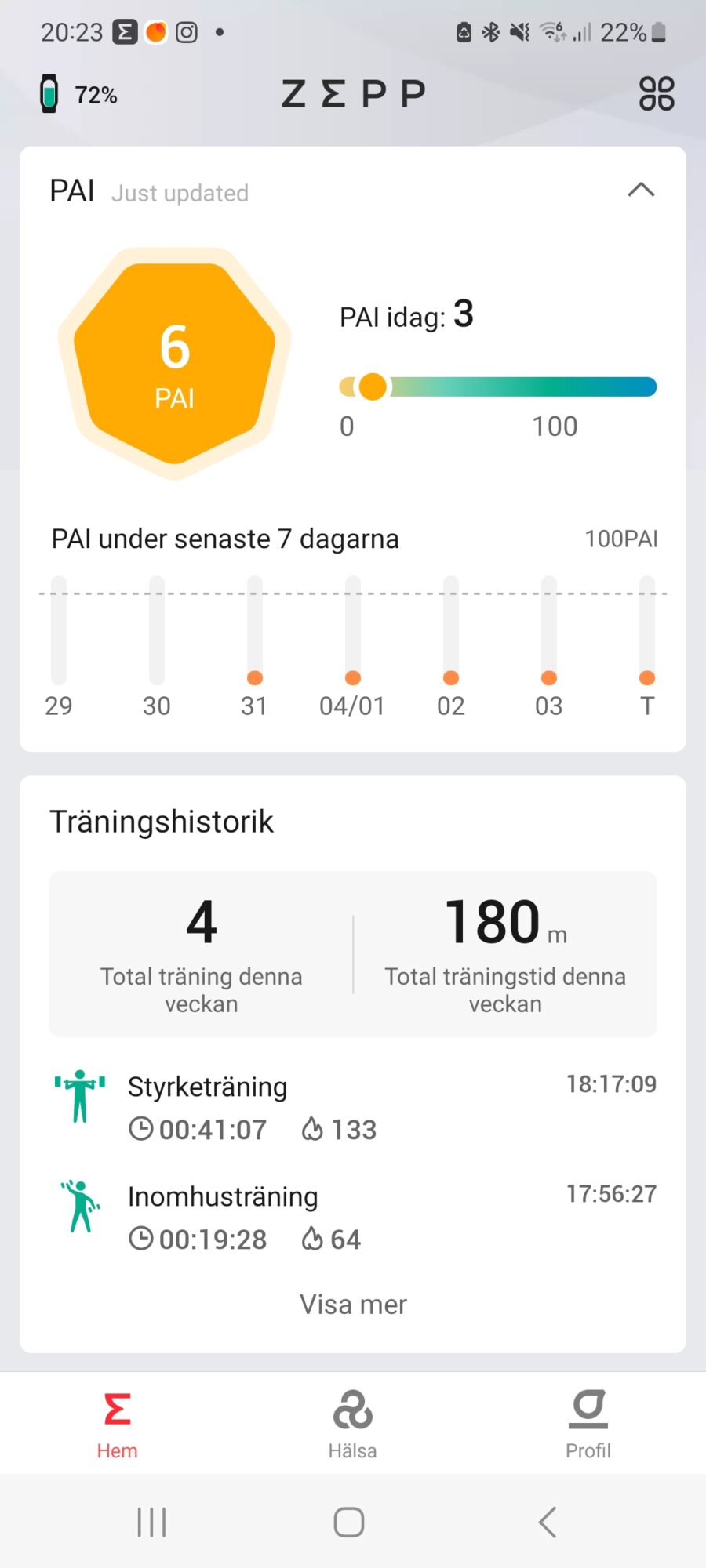 Derudover har du også bogstavkombinationen PAI (Personal Activity Intelligence), der holder styr på dit velbefindende og din sundhed. PAI opgøres i 7-dages cyklusser, og det optimale tal er omkring 100. Den tager højde for en række forskellige personlige sundheds- og fitnessdata, som derefter koges ned til denne unikke værdi.