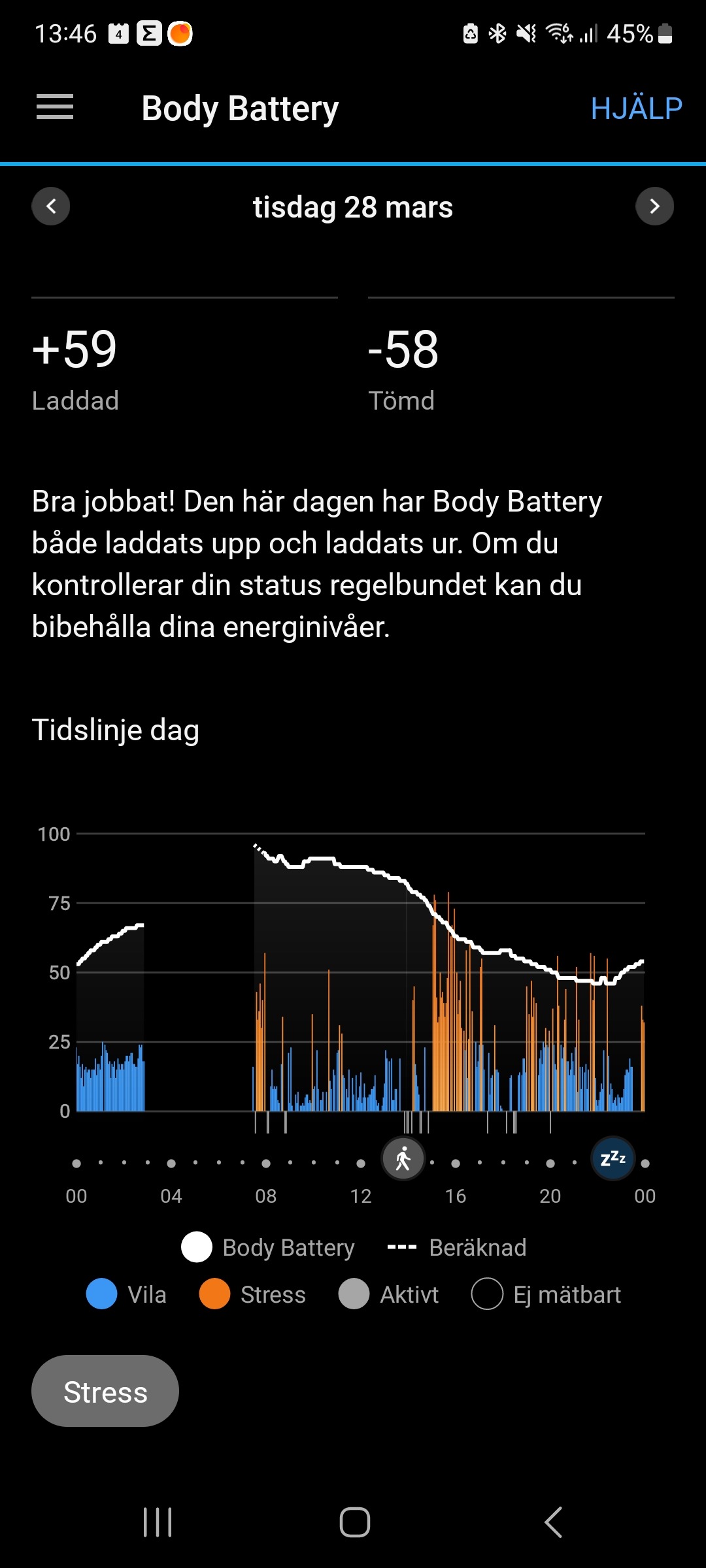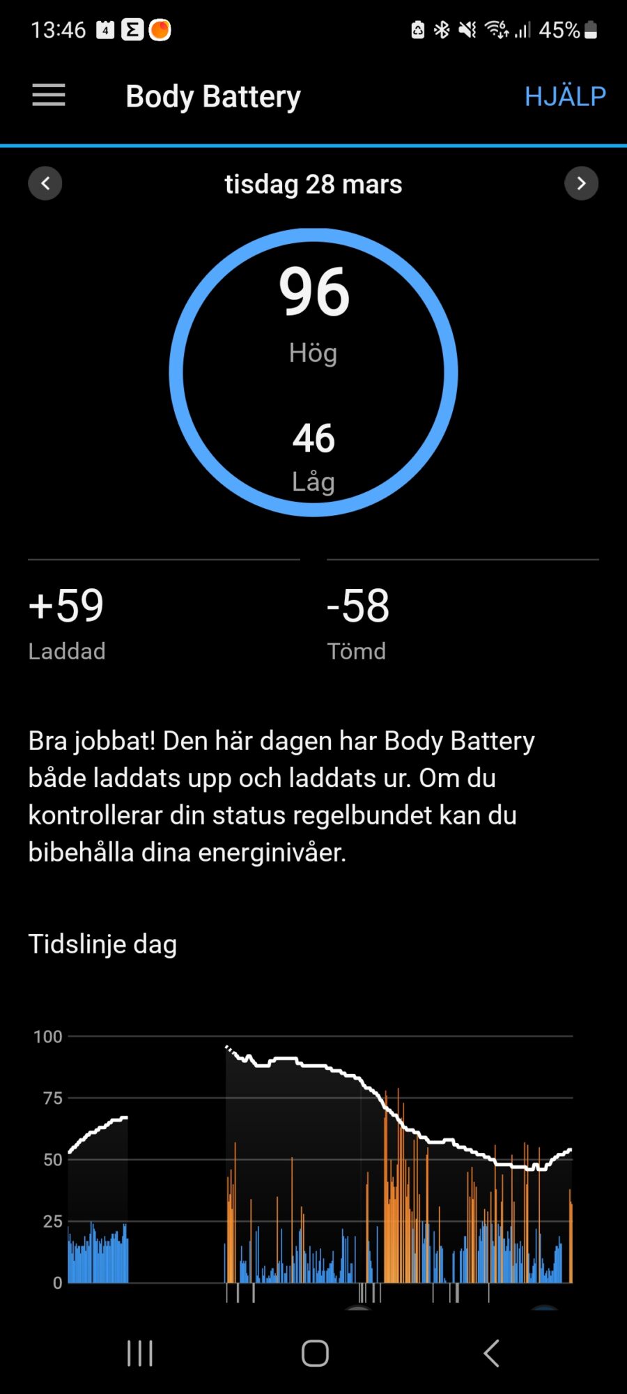 Garmin benytter sig af noget, de kalder for Body Battery til at give dig som bruger en indikation af, om det er tid til at sætte gang i træningen eller geare ned for at bibeholde eller opnå et godt helbred. En kombination af pulsvariation, stress og aktivitet giver et løbende overblik over dit energiniveau over hele dagen.