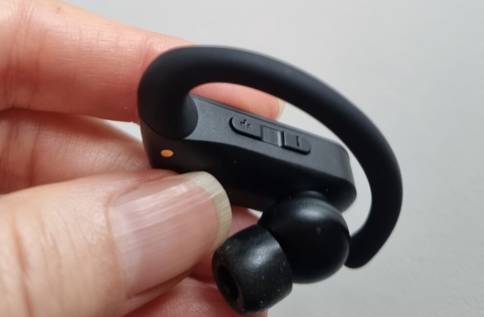 For at sikre, at propperne bliver på plads, er de udstyret med en ørekrog, der er blød og fleksibel. Personligt synes jeg, at det er en god løsning til en problemfri træning.