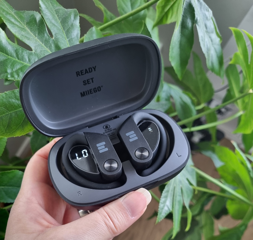 Det første, der slår mig, da jeg pakker mine nye trådløse hørepropper ud, er størrelsen på etuiet. Det er virkelig stort! Man behøver selvfølgelig kun at åbne det for at forstå hvorfor – Miibuds Active Go er et par virkelig store hørepropper, og jeg kan næsten allerede mærke, at det klemmer i ørerne.