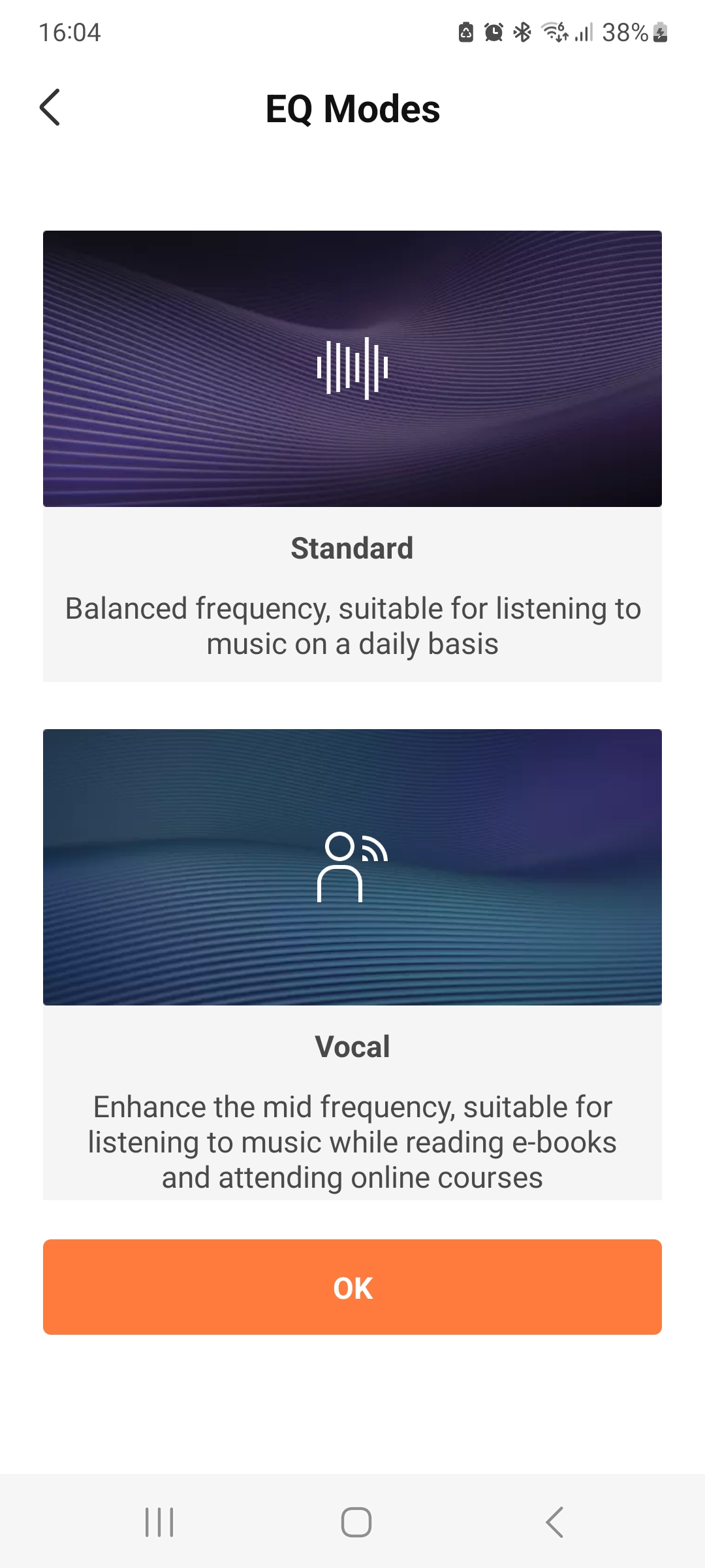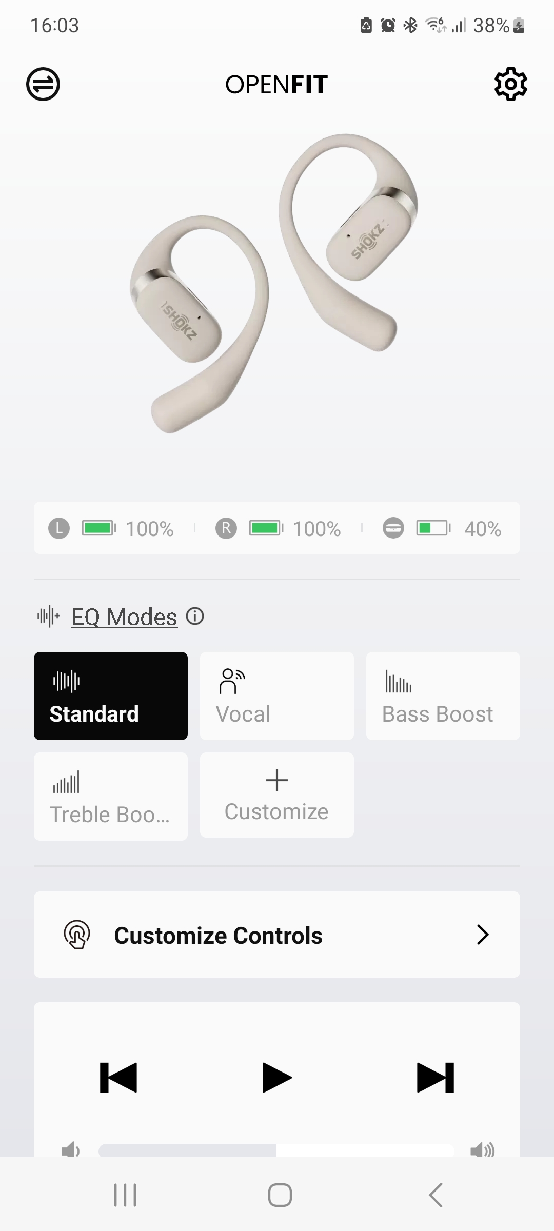 Der er ingen foruddefinerede lydindstillinger som pop, rock eller akustisk, som mange hovedtelefoner har. Men du kan lave og gemme dine egne equalizer-indstillinger, så de passer til dit humør eller den musik, du lytter til.