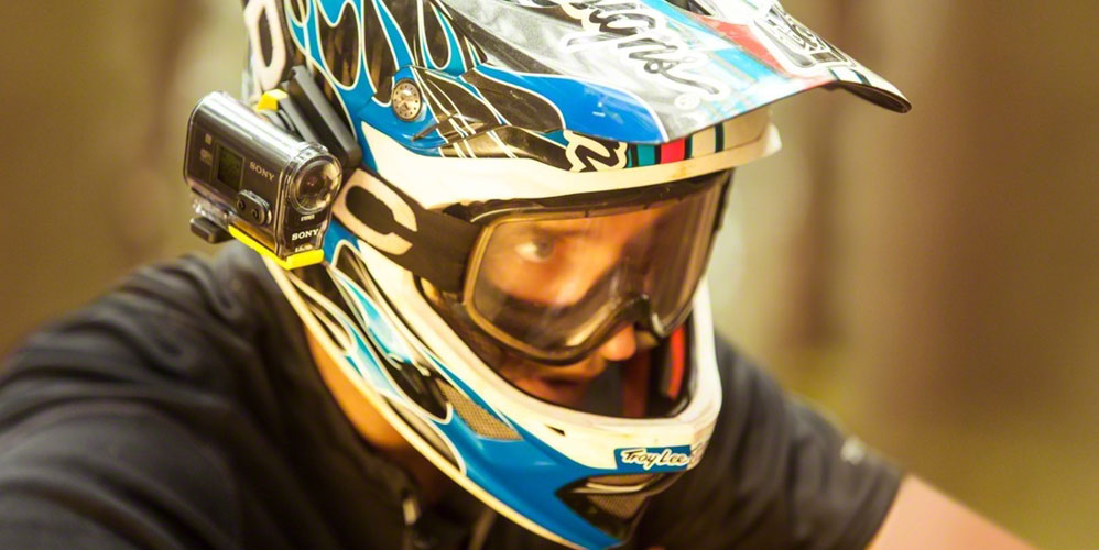 Panasonic HX-A100 er et cigarformet kamera, der fæstnes til hovedet med en bøjle. Desværre er billedkvaliteten ikke så god.