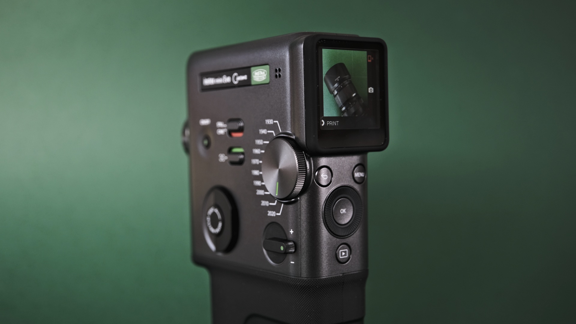 Evo Cinema har også en anden smart funktion. På forsiden sidder et 28 mm vidvinkelobjektiv med blænde 2 lysstyrke, men ingen fokusring som på Fujicas smalfilmskameraer i 1970’erne. I stedet har Evo Cinema en Degree Control Dial – en ring, hvor du kan justere styrken af æra-effekten i 10 grader. Der er også en Frame Switch her, som tilføjer en moderne ramme til dine klip, hvis du ønsker det.