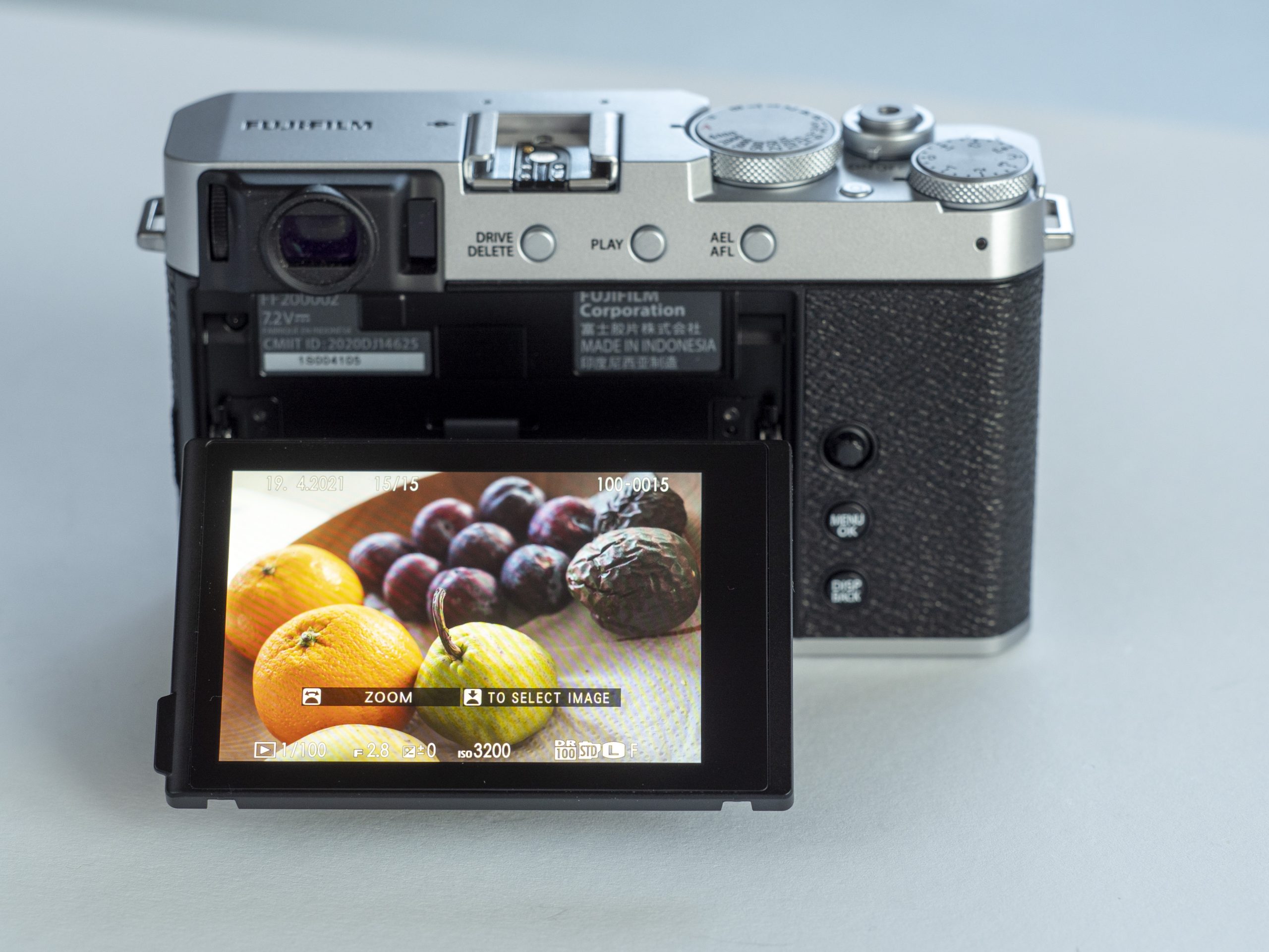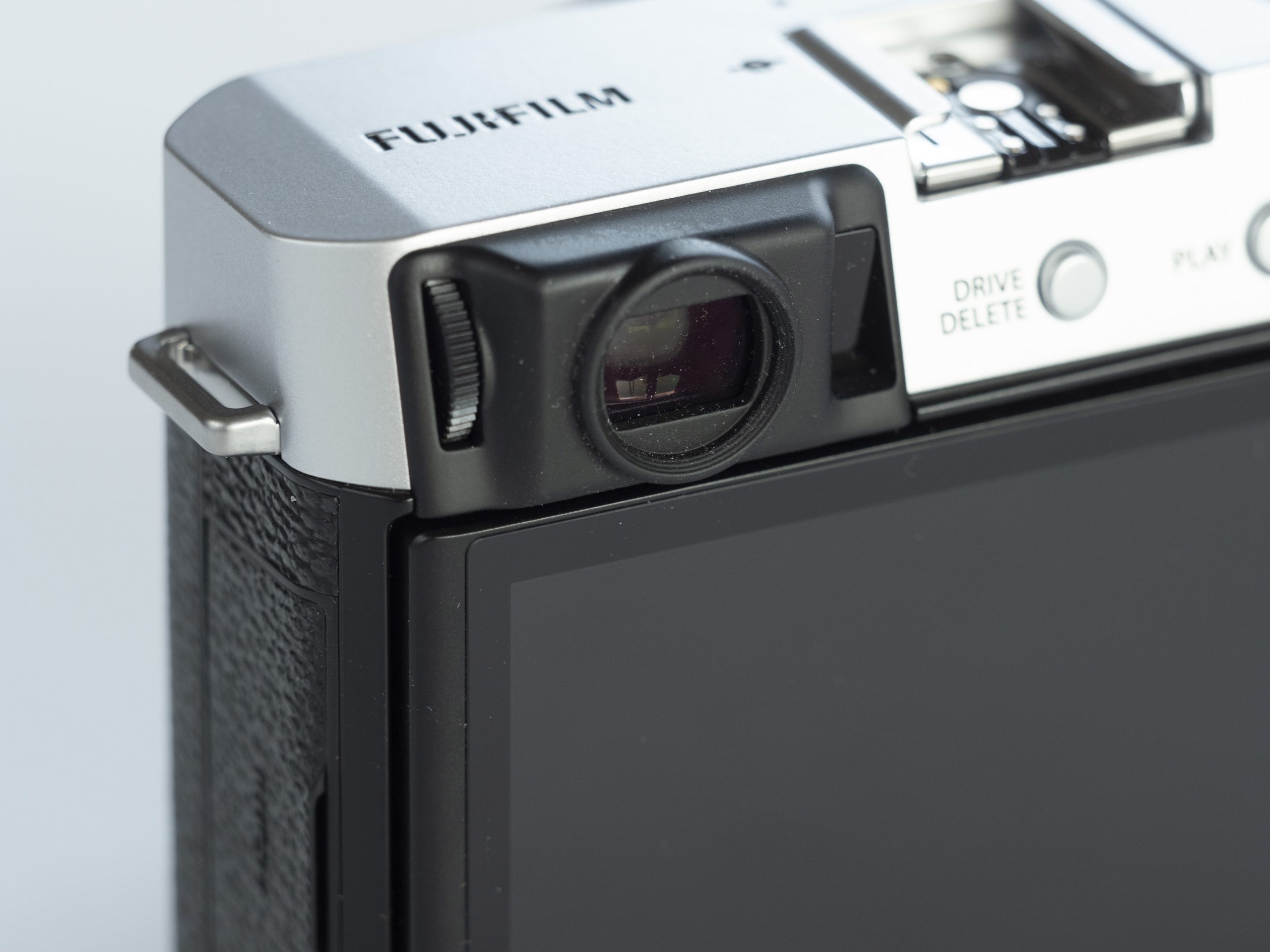 Den elektroniske søger er relativt stor for et så lille kamera, men med 2,36 megapixel er opløsningen moderat for et kamera i 2021. Flere af knapperne kan omprogrammeres til andre, mere brugte funktioner, og indstillingshjulet på forsiden er trykfølsomt med udvidet funktionalitet. Jeg savnede dog et tilsvarende på bagsiden.