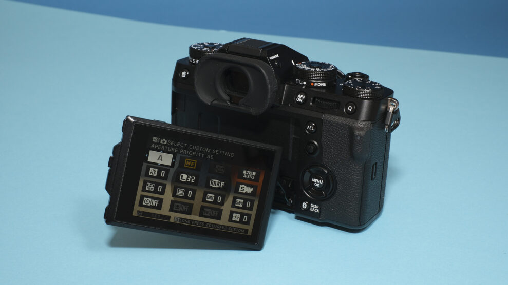Ser man kameraet efter i sømmene, finder man ud af, at udløserknappen er nemmere at nå, og at indstillingshjulene foran og bagpå er klikbare. Hjulet til højre, det til eksponeringskompensation, er lidt større, og under ISO-hjulet til venstre og lukkertidshjulet til højre finder man de samme indstillingsmuligheder som på X-T4.