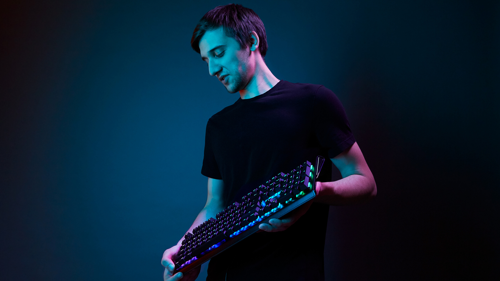 At man ikke kan mærke et klart kontaktpunkt, er en tilvænningssag. Til gengæld kan man lynhurtigt blive forvænt med tasternes stabilitet. Her er der ingen som helst slinger i valsen. De bevæger sig kun i én retning, og det er lodret op og ned. Med 104 tasters anti-ghosting er du sikker på aldrig at miste en indtastning.