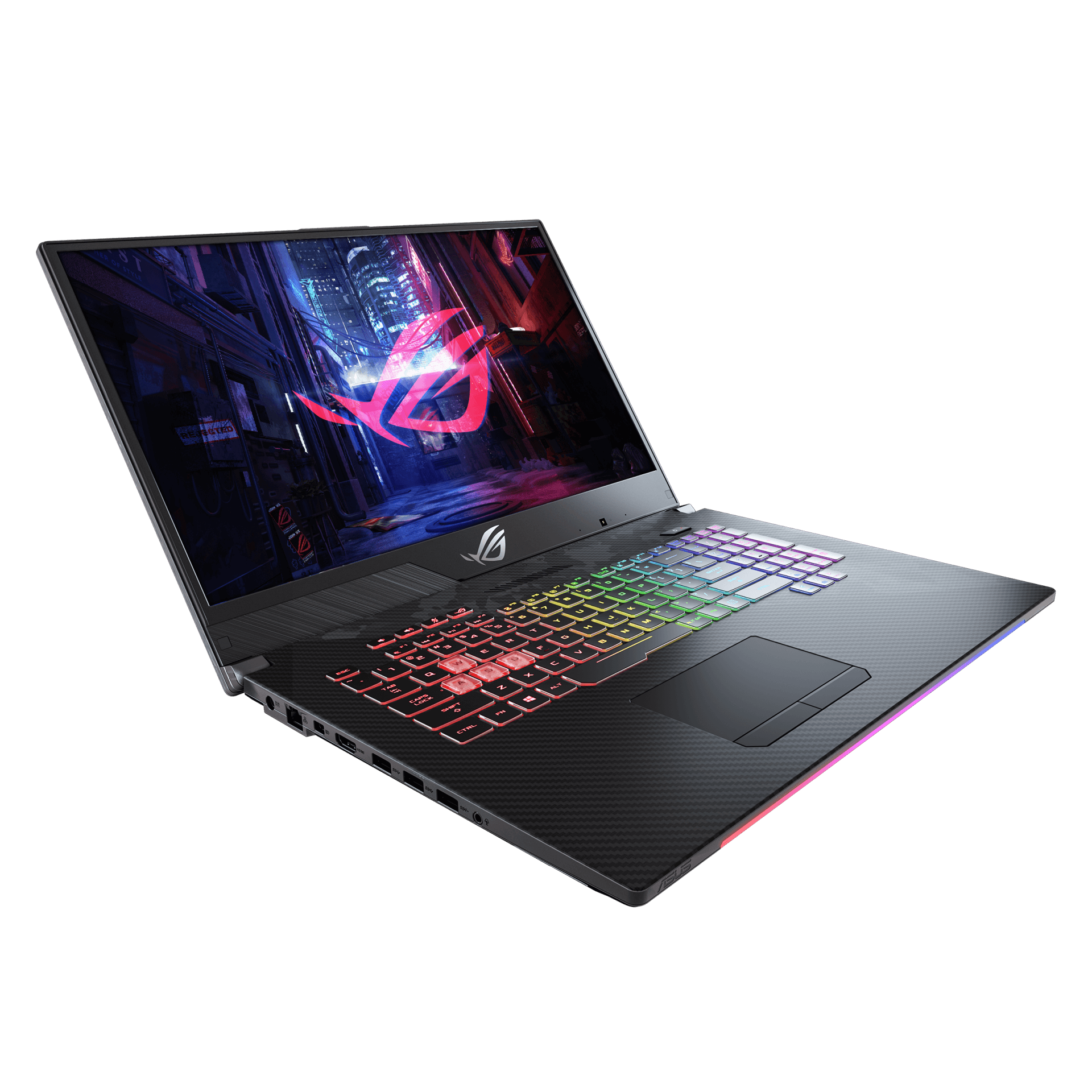 Asus ROG Strix Scar II er en ordentlig fladfisk af en letvægts-gamer. Med 17,3 tommers skærmformat kan man spille uden at lide under dårlig ergonomi. Billedet er stort, opdateringshastigheden høj (144 Hz), og der er god plads til både numerisk tastatur og multimedietaster. WASD-tasterne er gennemsigtige, og der er RGB-festlys både for og bag og under hver tast.