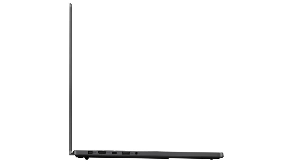 Til trods for det slanke kabinet er der et ganske fornuftigt udvalg af porte, herunder en HDMI-port, to USB-C porte, to USB-A porte og en kortlæser. Skærmen er en 16″ OLED WQXGA (2.560 x 1.600 pixel) med en opdateringshastighed på 240 Hz.