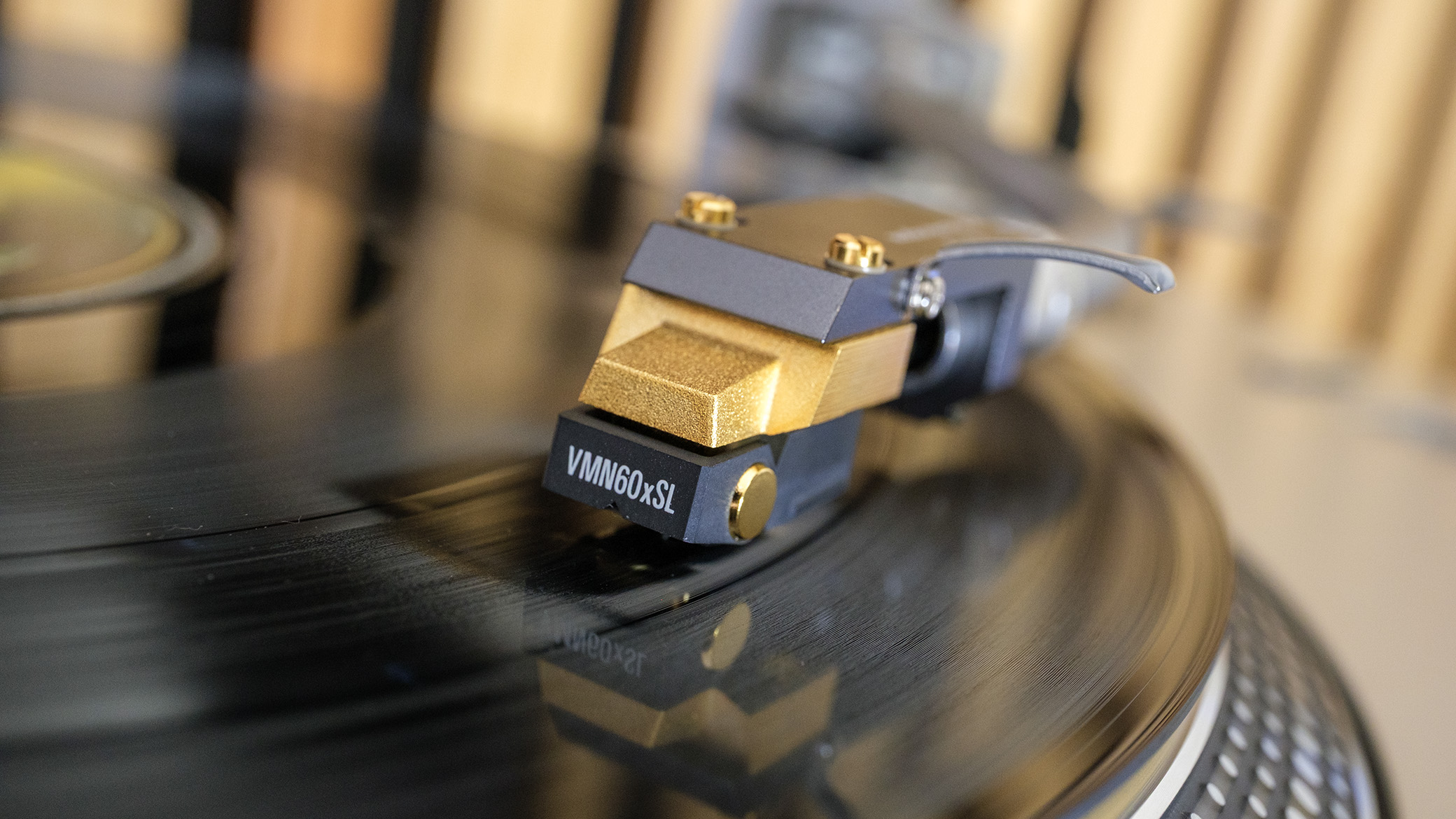 Det dybbrune polymerhus bevarer nålearmen i Boron, men her er slibningen en skarpere Shibata, som af audiofiler anses for at være en af de bedste slibninger til en pickup-nål. Det næste og sidste trin på stigen er VMN60xSL. Her er polymerkroppen sort med en Boron-nålearm, men selve slibningen har en skarpere profil, kaldet Special Line Contact.
