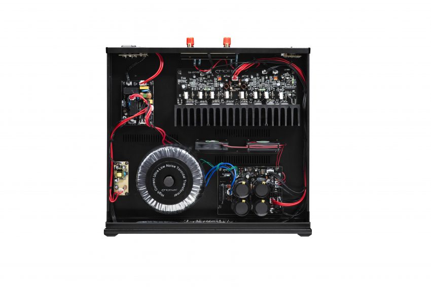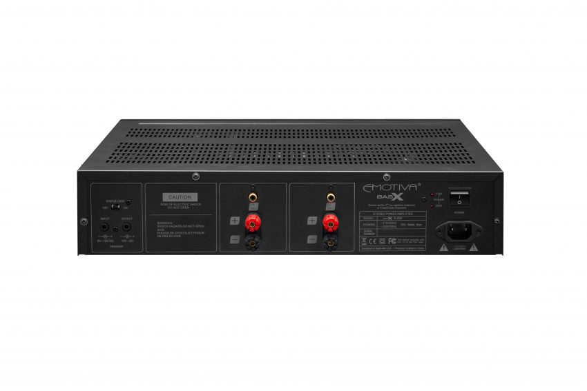 Emotiva BasX A-300 leverer 150 watt pr. kanal i 8 ohms belastning – og det dobbelte i 4 ohm. Det vidner om en solidt dimensioneret strømforsyning og lover godt for basgengivelsen. Forstærkeren arbejder i klasse A/B, og strømforsyningen er af den klassiske slags med en solid ringkernetransformator og ladeelektrolytter i en tillidsvækkende størrelse. Med andre ord klassisk teknologi, som de lavede det i de gode gamle hi-fi-dage. Ikke noget med klasse D og switched-mode-strømforsyninger. Selv om nogle af komponenterne dog er krøbet i størrelse.